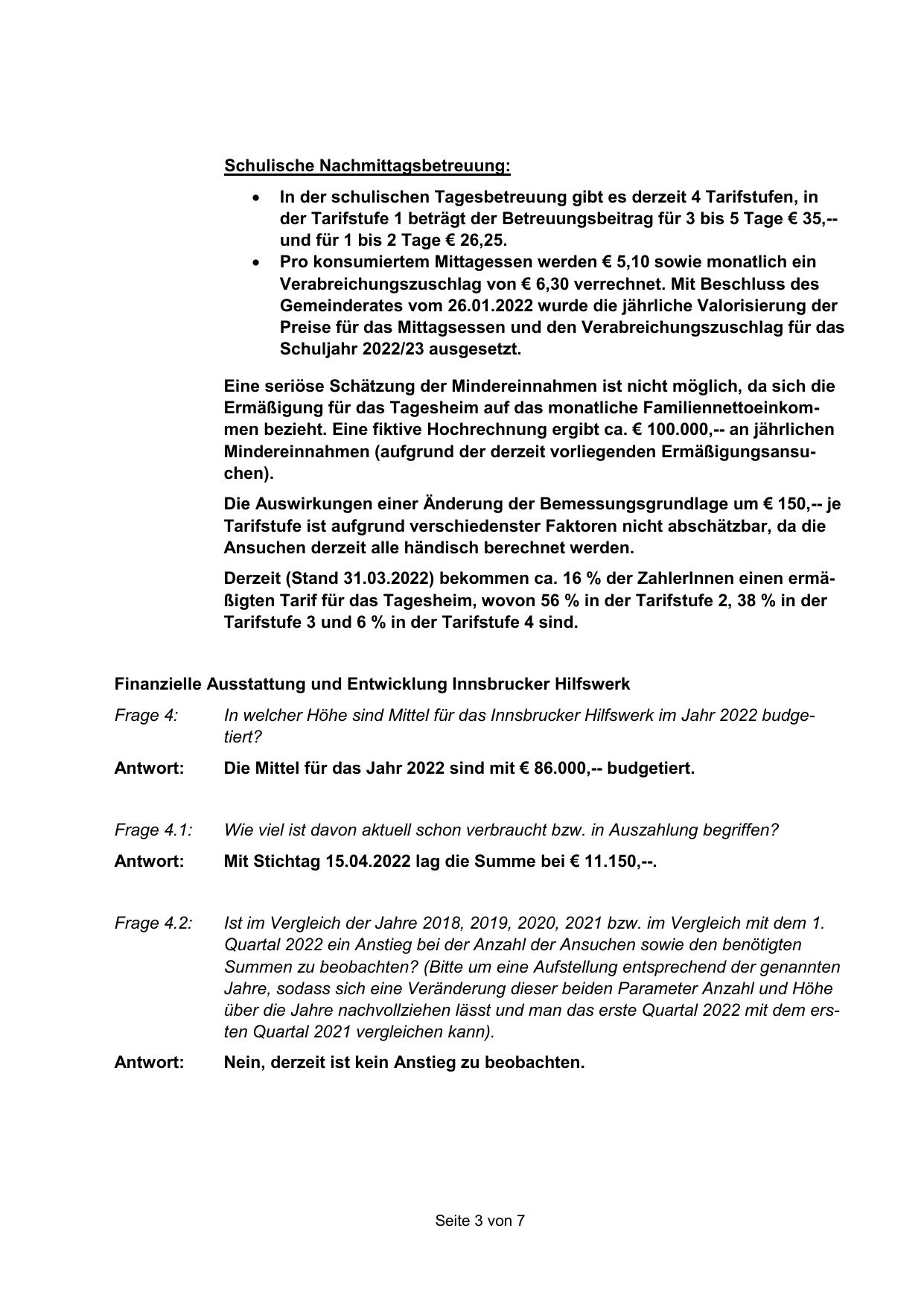 Ermäßigung für das Tagesheim auf das monatliche Familiennettoeinkommen bezieht. Eine fiktive Hochrechnung ergibt ca. € 100.000,-- an jährlichen