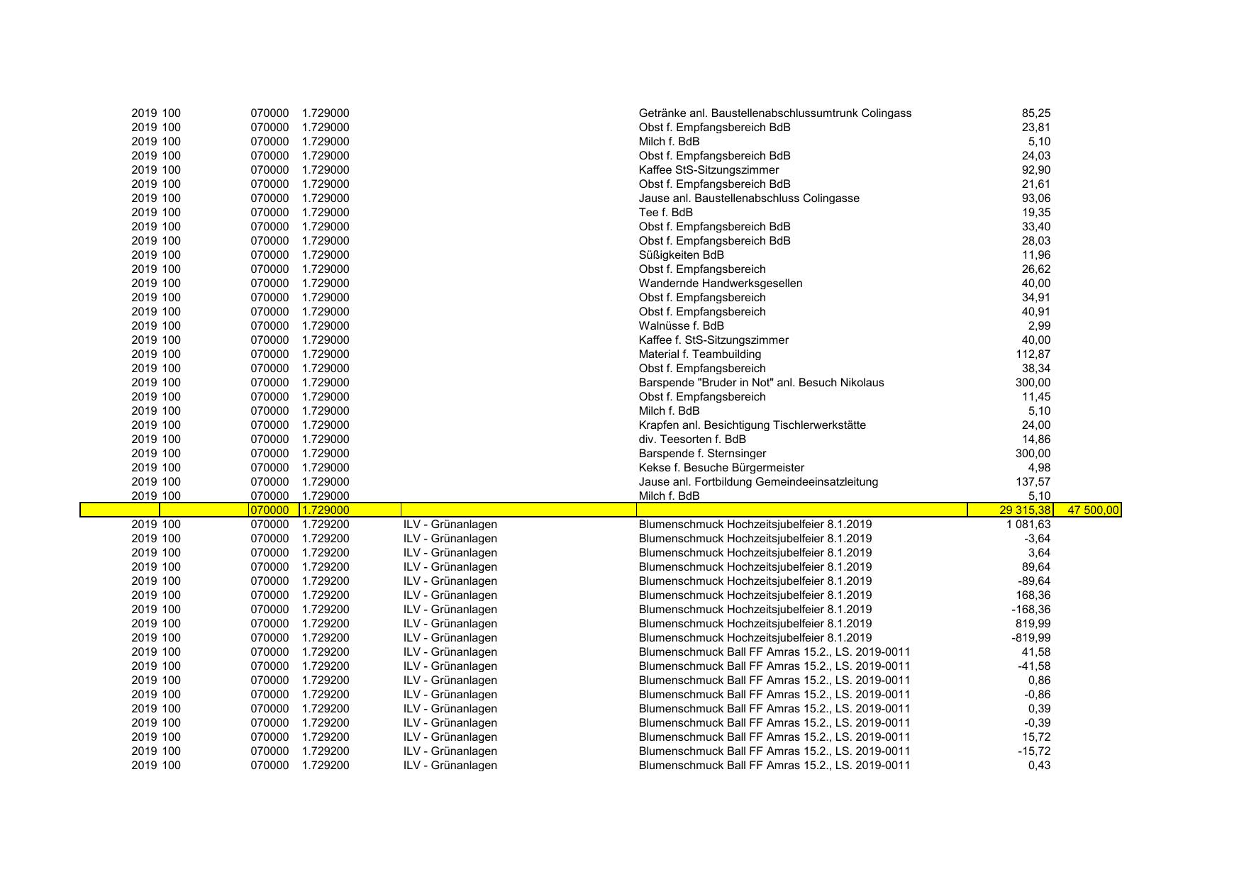 Getränke anl. Baustellenabschlussumtrunk Colingass