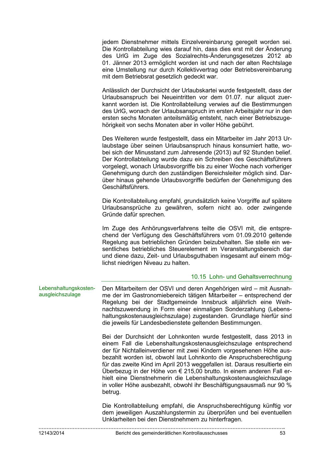 Des Weiteren wurde festgestellt, dass ein Mitarbeiter im Jahr 2013 Urlaubstage über seinen Urlaubsanspruch hinaus konsumiert hatte, wobei sich der Minusstand zum Jahresende (2013) auf 92 Stunden belief.