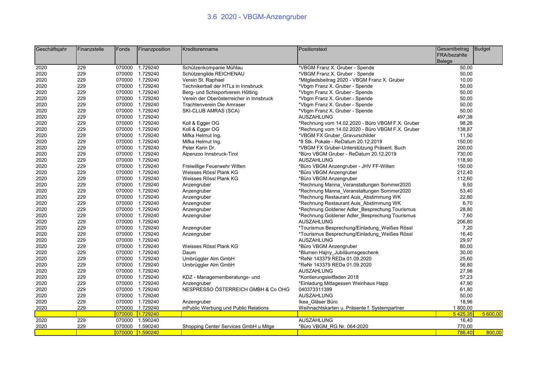 *Mitgliedsbeitrag 2020 - VBGM Franz X. Gruber