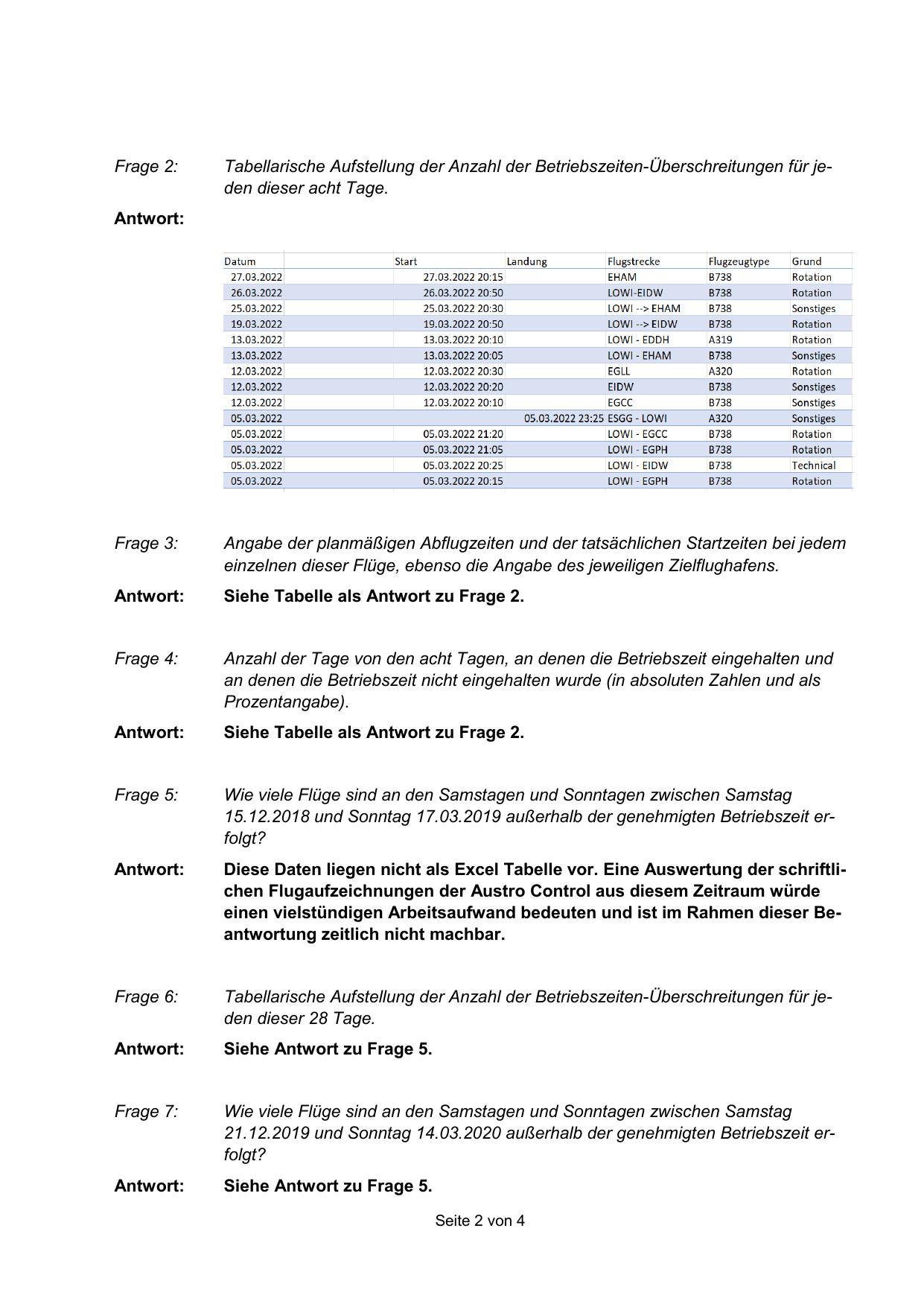 Diese Daten liegen nicht als Excel Tabelle vor. Eine Auswertung der schriftlichen Flugaufzeichnungen der Austro Control aus diesem Zeitraum würde