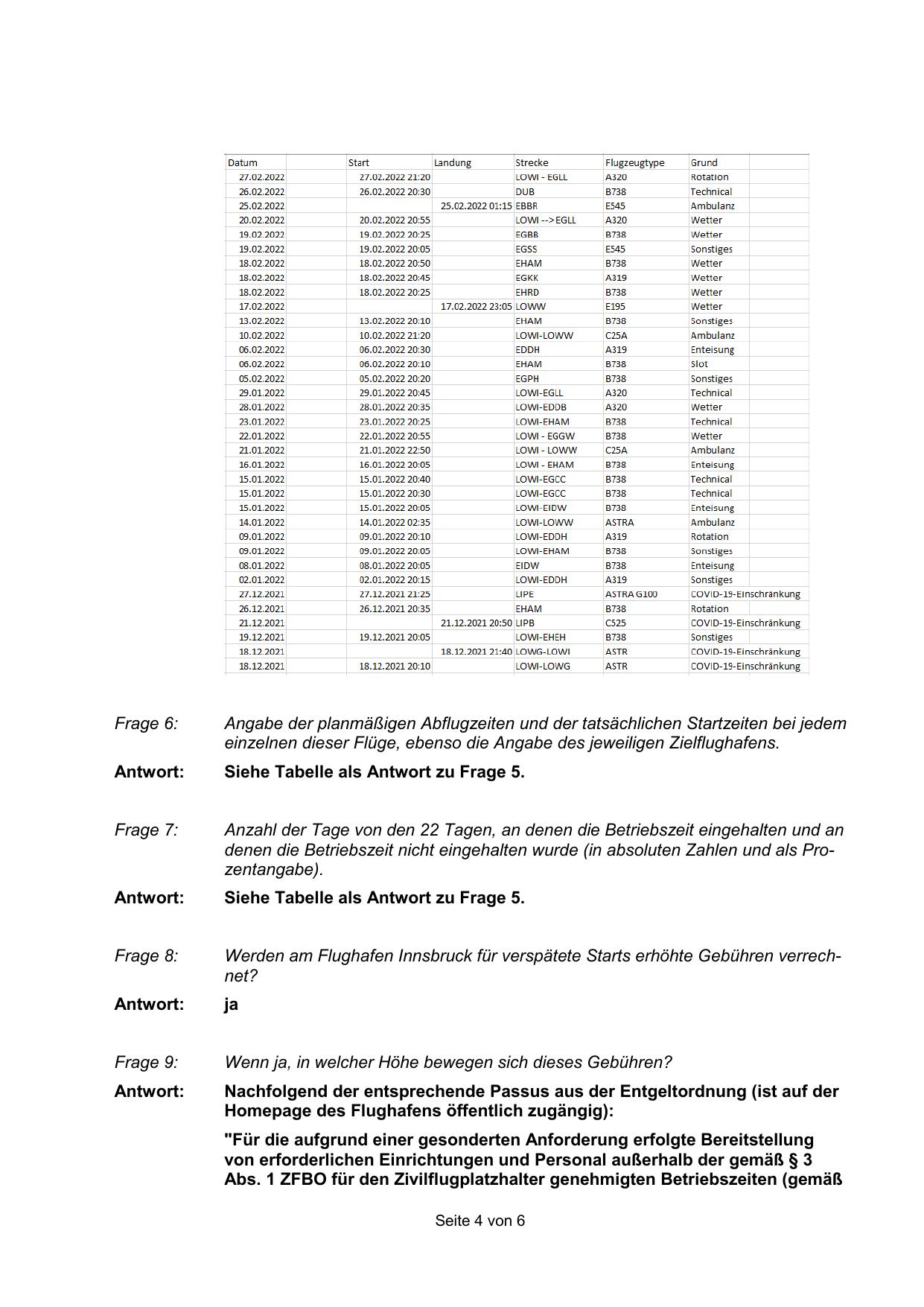 Werden am Flughafen Innsbruck für verspätete Starts erhöhte Gebühren verrechnet?