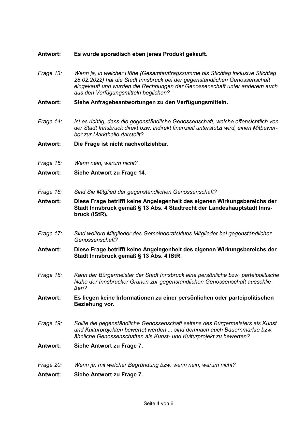 Nähe der Innsbrucker Grünen zur gegenständlichen Genossenschaft ausschließen?