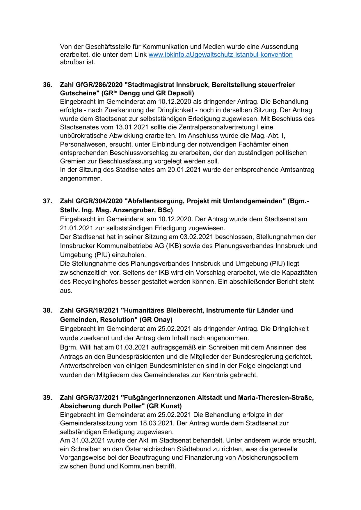 Zahl GfGR/37/2021 "Fußgängerlnnenzonen Altstadt und Maria-Theresien-Straße,