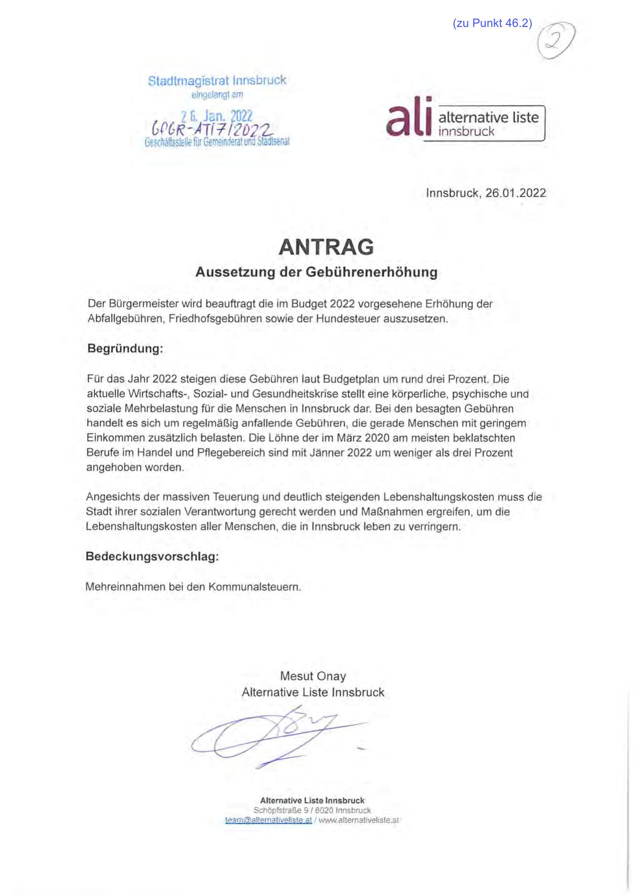 soziale Mehrbelastung für die Menschen in Innsbruck dar. Bei den besagten Gebühren