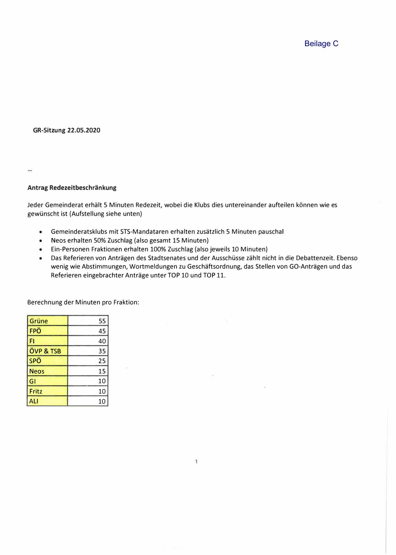 Jeder Gemeinderat erhält 5 Minuten Redezeit, wobei die Klubs dies untereinander aufteilen können wie es