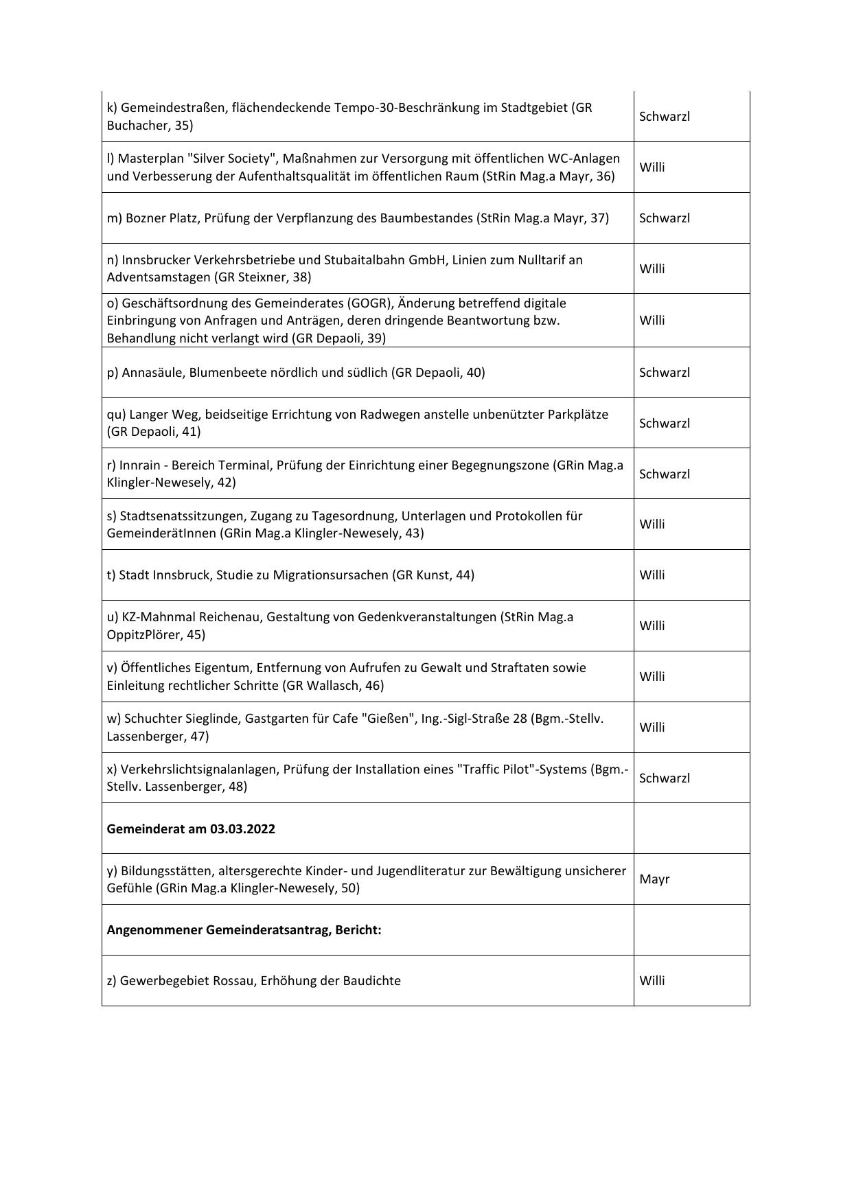 m) Bozner Platz, Prüfung der Verpflanzung des Baumbestandes (StRin Mag.a Mayr, 37)