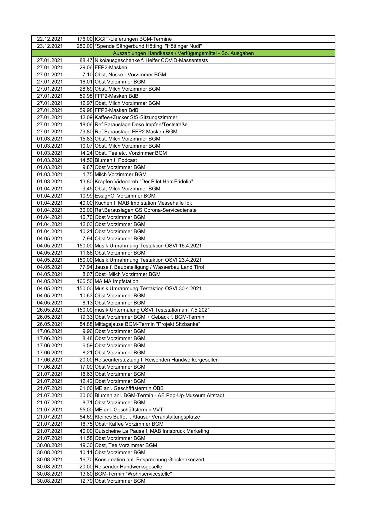 250,00 *Spende Sängerbund Hötting "Höttinger Nudl"