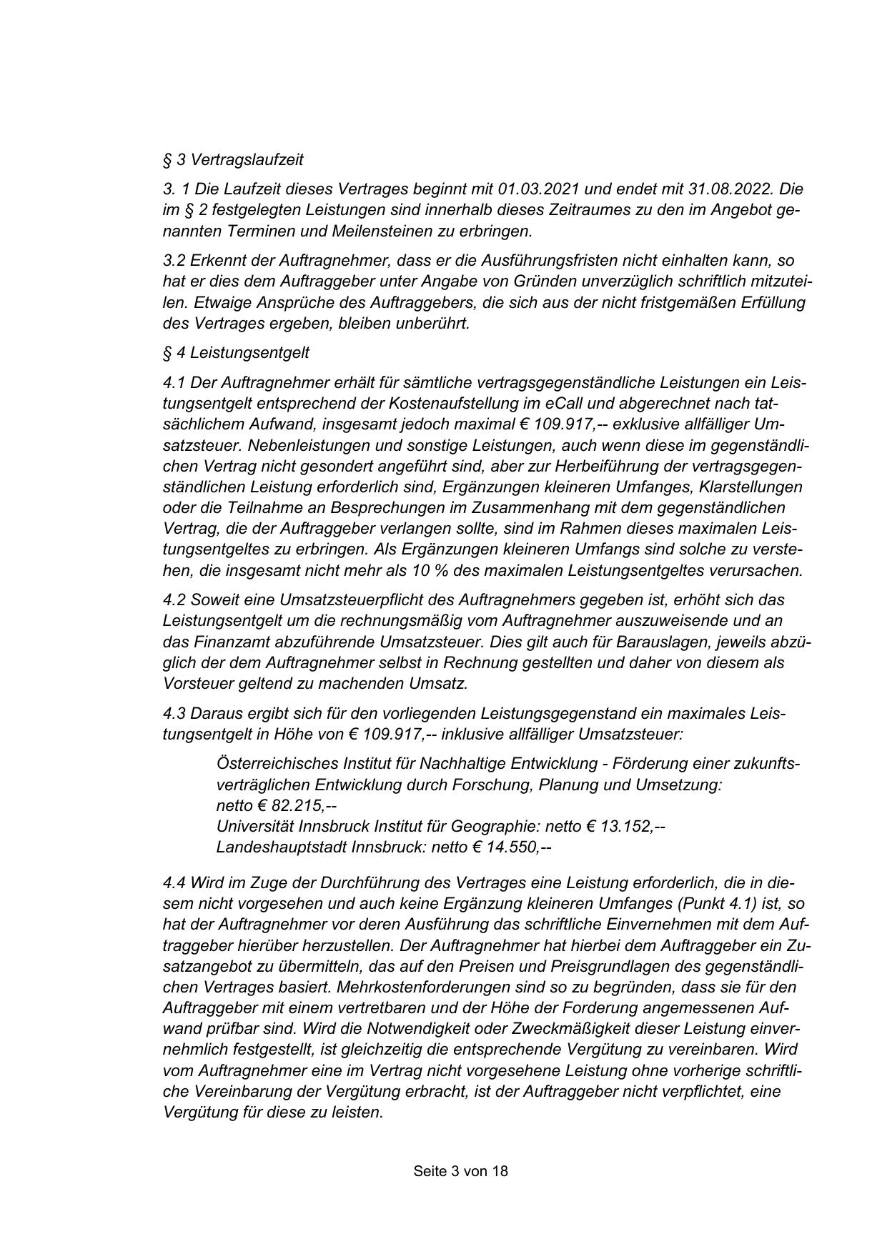 netto € 82.215,-Universität Innsbruck Institut für Geographie: netto € 13.152,-Landeshauptstadt Innsbruck: netto € 14.550,--
