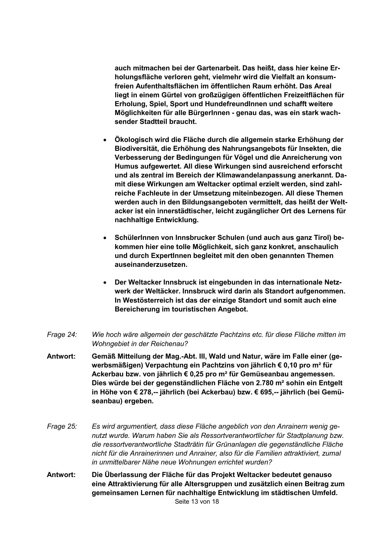auch mitmachen bei der Gartenarbeit. Das heißt, dass hier keine Erholungsfläche verloren geht, vielmehr wird die Vielfalt an konsumfreien Aufenthaltsflächen im öffentlichen Raum erhöht. Das Areal
