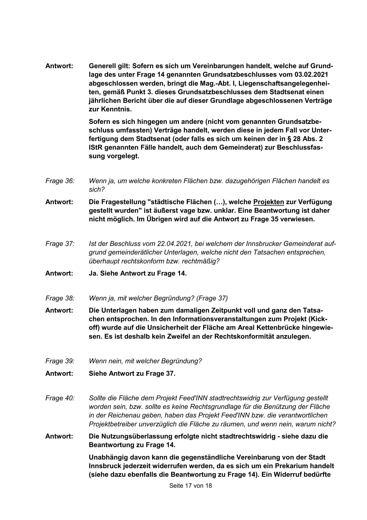Sollte die Fläche dem Projekt Feed"INN stadtrechtswidrig zur Verfügung gestellt