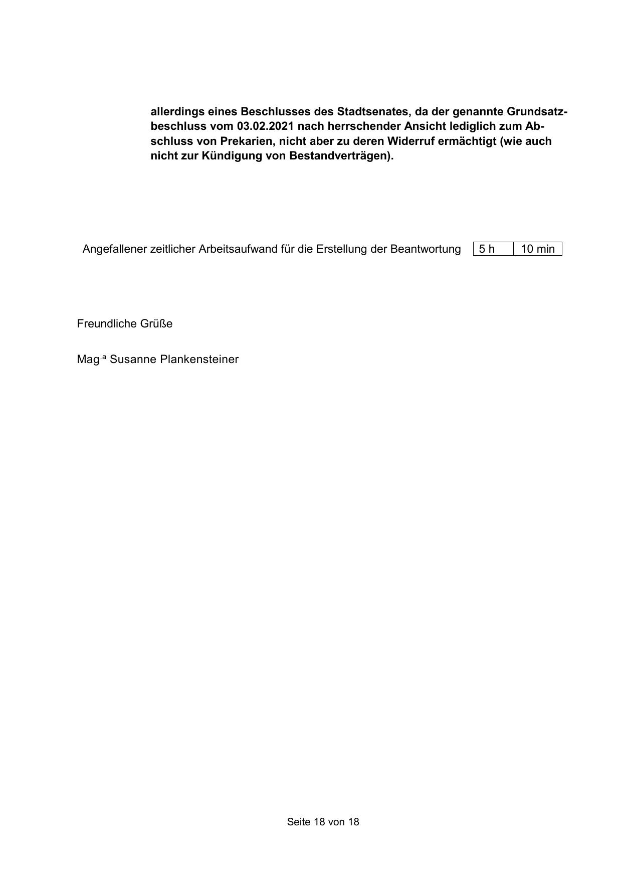 Angefallener zeitlicher Arbeitsaufwand für die Erstellung der Beantwortung