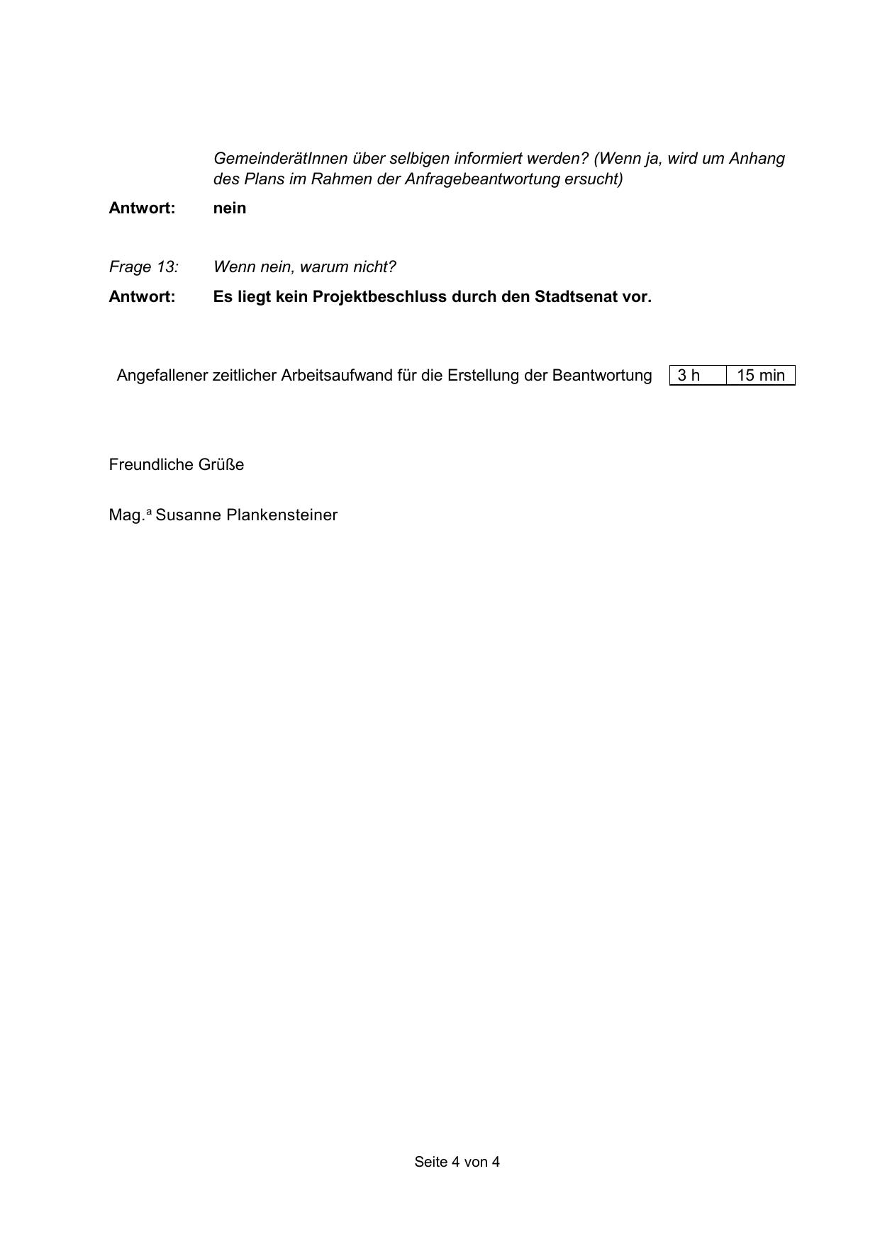 des Plans im Rahmen der Anfragebeantwortung ersucht)