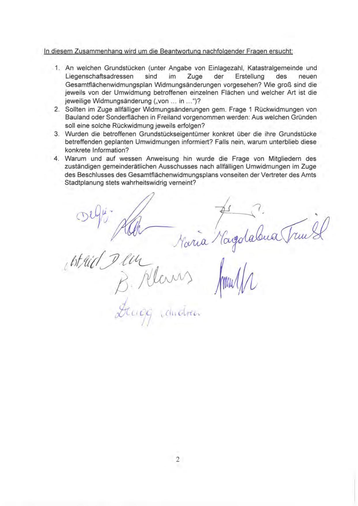 2. Sollten im Zuge allfälliger Widmungsänderungen gern . Frage 1 Rückwidmungen von