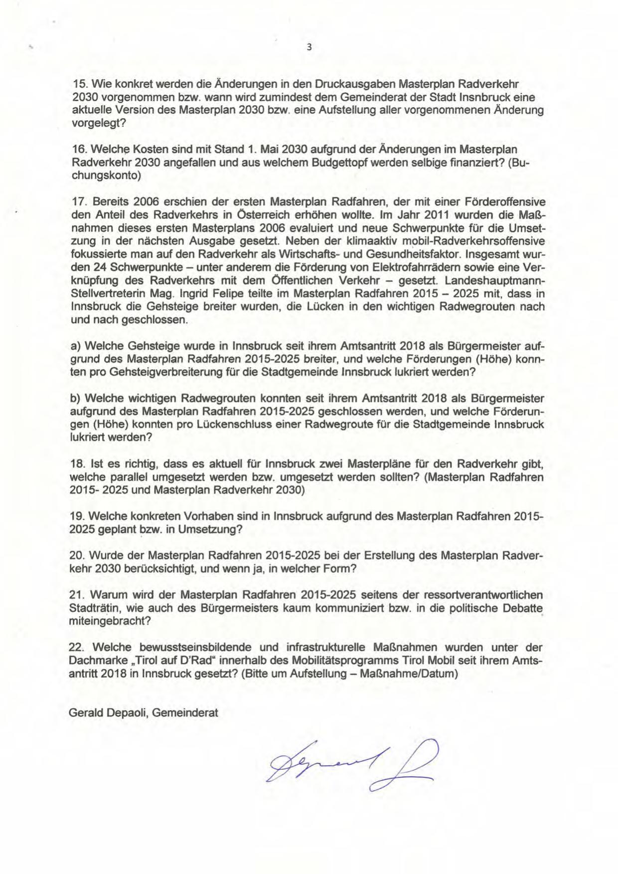 2030 vorgenommen bzw. wann wird zumindest dem Gemeinderat der Stadt lnsnbruck eine