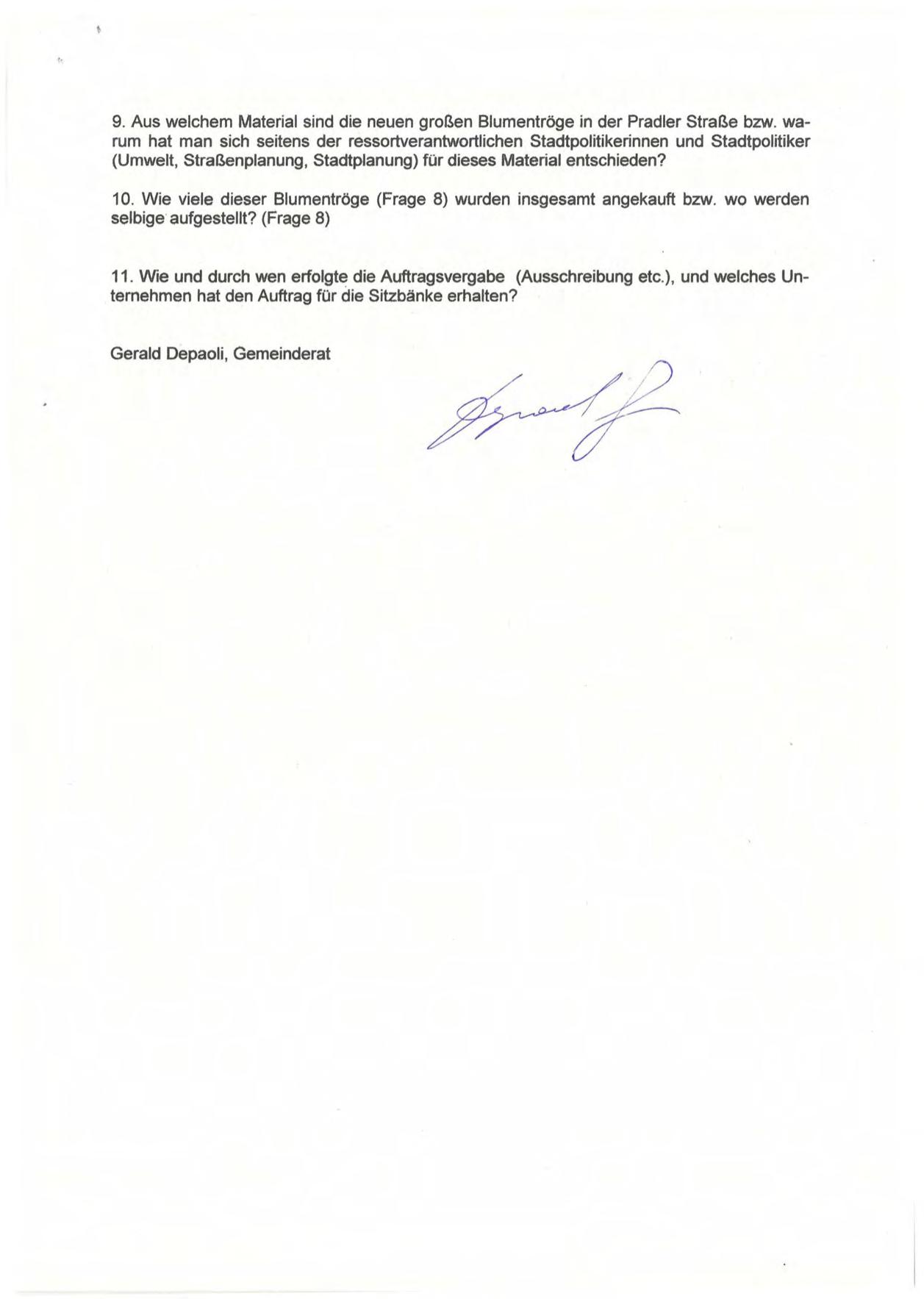 9. Aus welchem Material sind die neuen großen Blumentröge in der Pradler Straße bzw. warum hat man sich seitens der ressortverantwortlichen Stadtpolitikerinnen und Stadtpolitiker