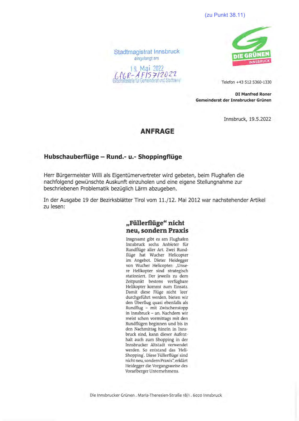 Herr Bürgermeister Willi als Eigentümervertreter wird gebeten, beim Flughafen die