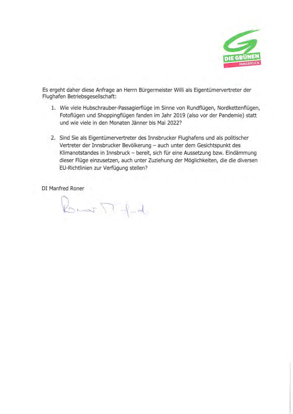 Es ergeht daher diese Anfrage an Herrn Bürgermeister Willi als Eigentümervertreter der