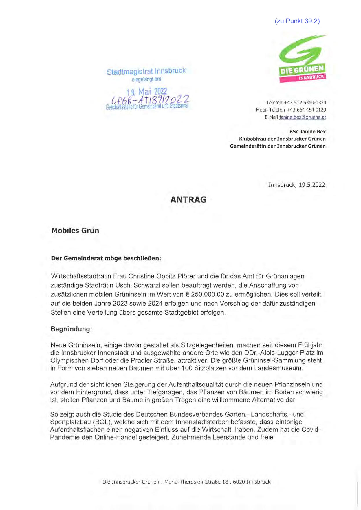 Die Innsbrucker Grünen . Maria-Theresien-Straße 18 . 6020 Innsbruck