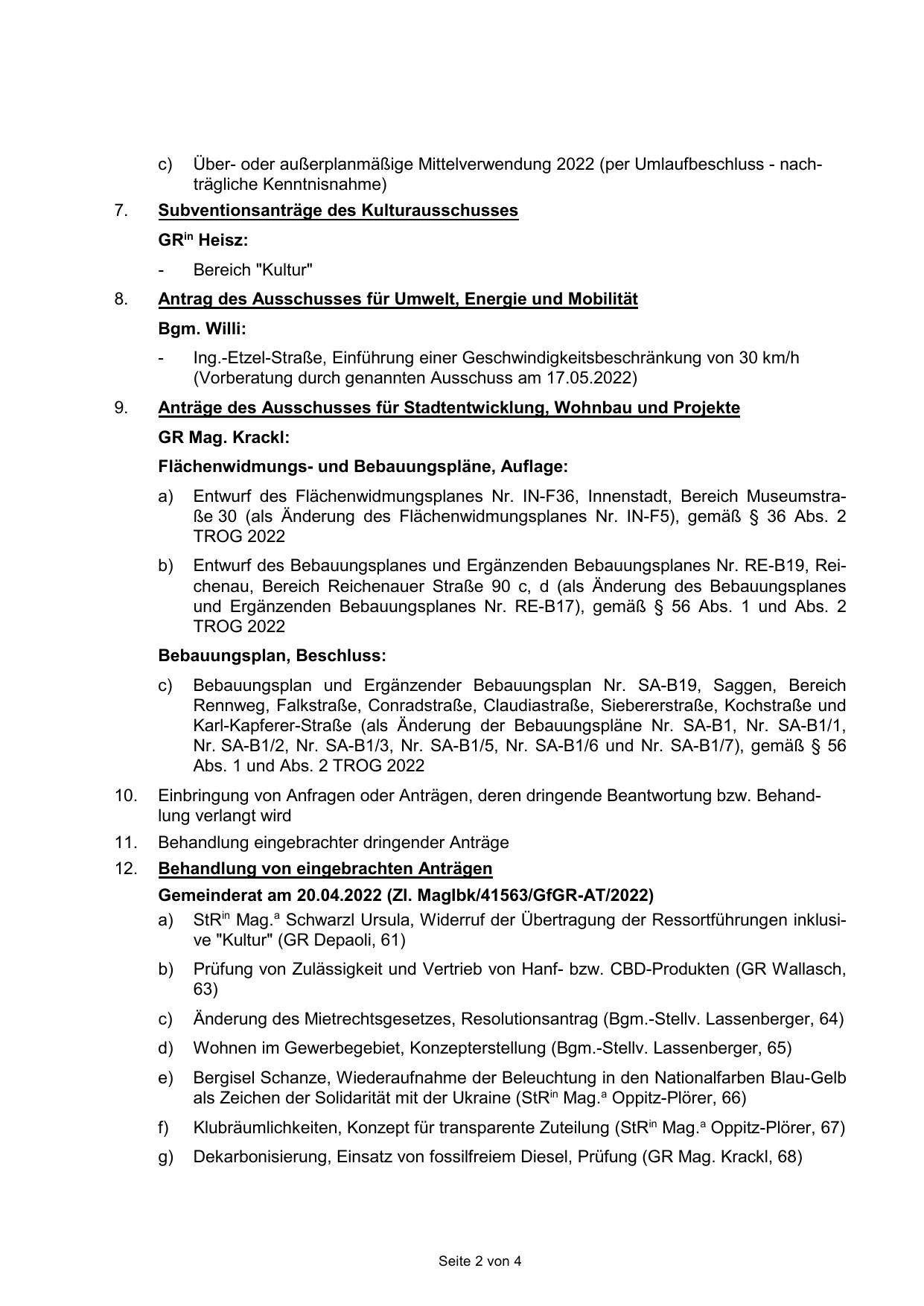 Gemeinderat am 20.04.2022 (Zl. MagIbk/41563/GfGR-AT/2022)