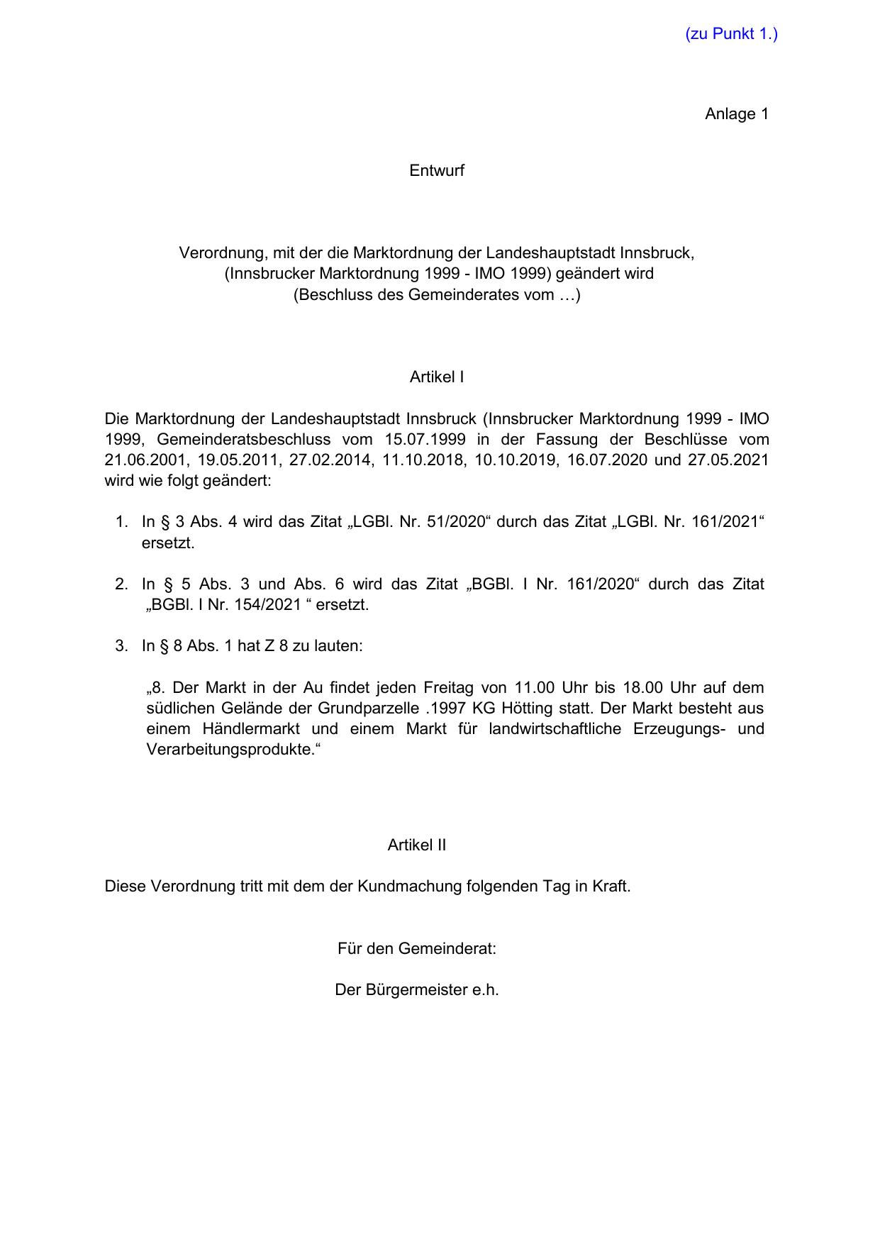 Verordnung, mit der die Marktordnung der Landeshauptstadt Innsbruck,