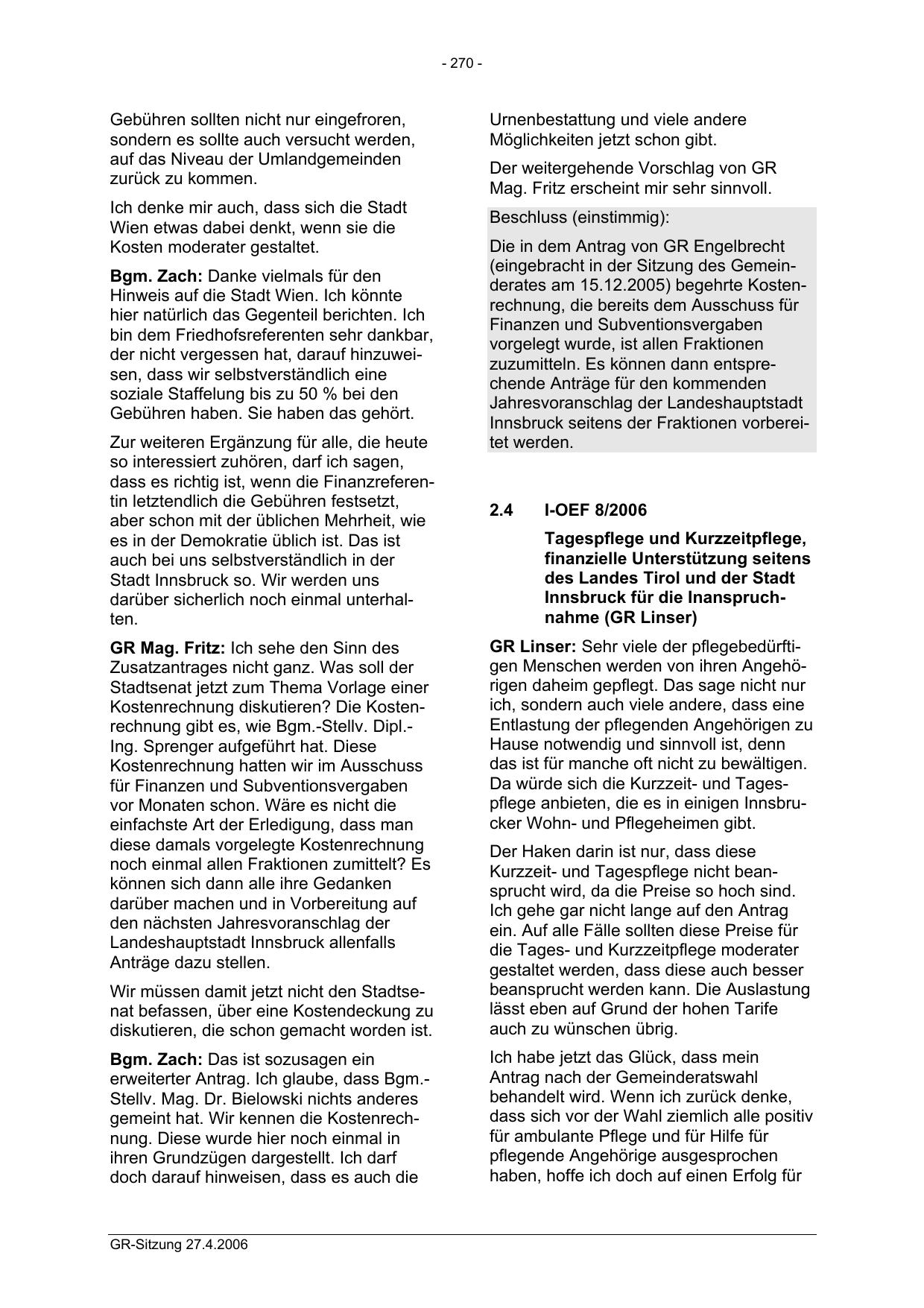 Innsbruck seitens der Fraktionen vorbereitet werden.