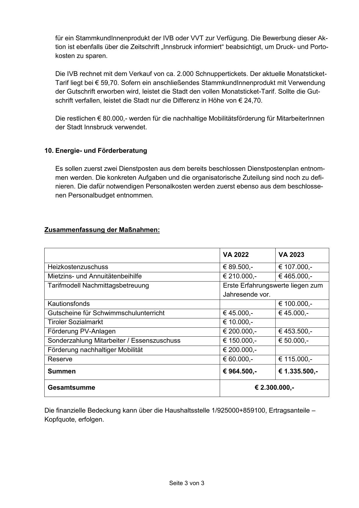 für ein StammkundInnenprodukt der IVB oder VVT zur Verfügung. Die Bewerbung dieser Aktion ist ebenfalls über die Zeitschrift „Innsbruck informiert“ beabsichtigt, um Druck- und Portokosten zu sparen.