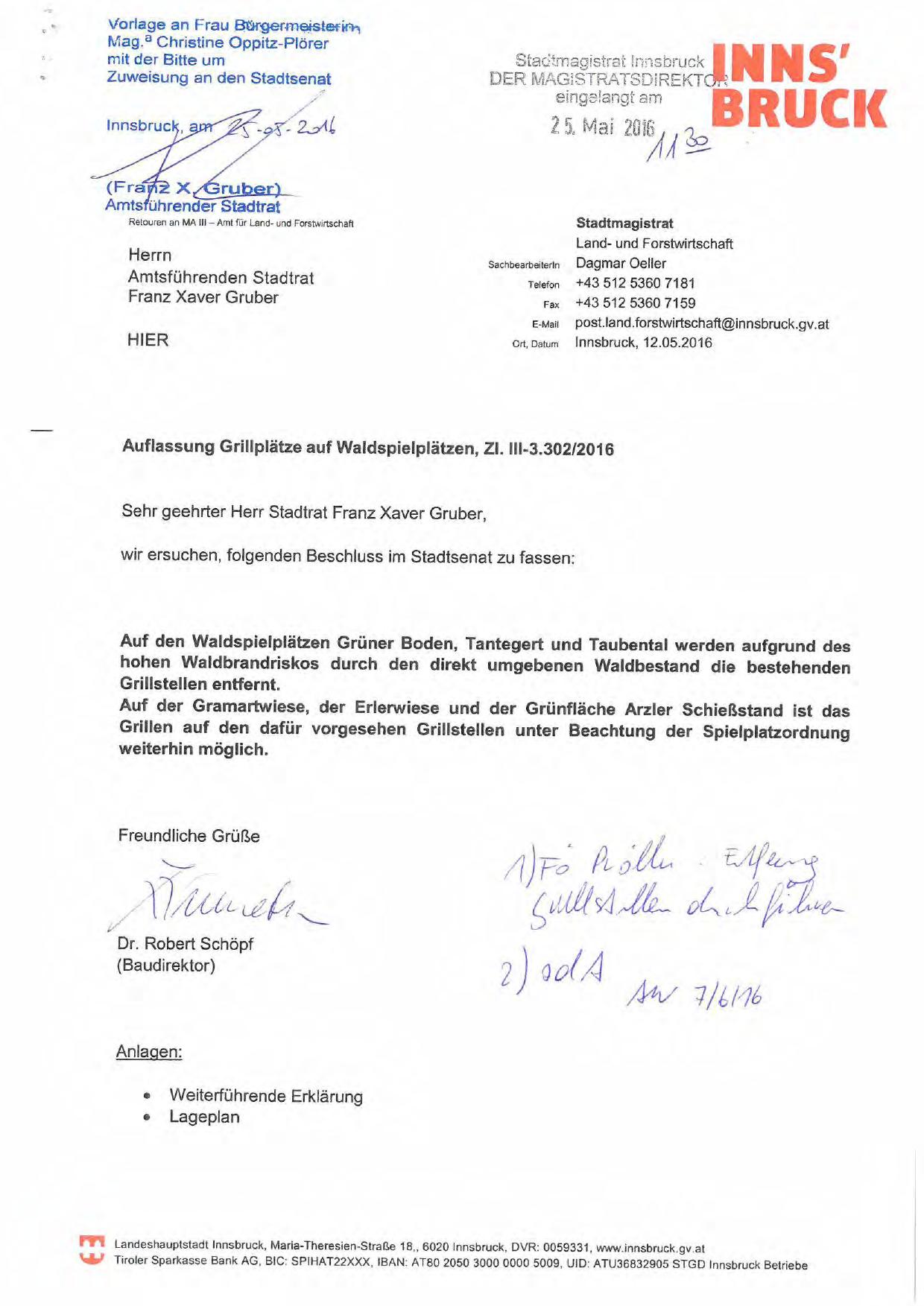 Auflassung Grillplätze auf Waldspielplätzen, ZI. 111-3.302/2016