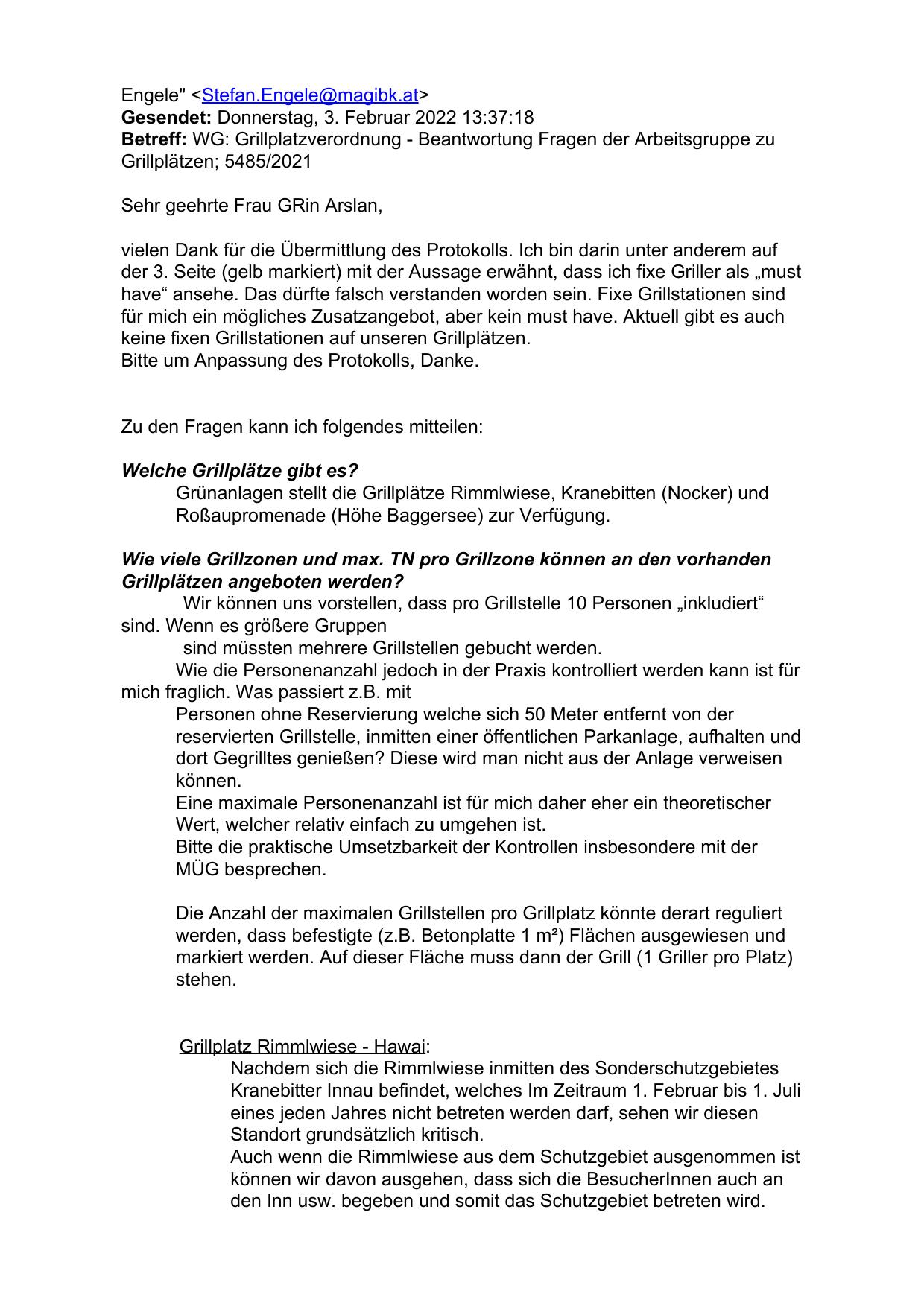 Betreff: WG: Grillplatzverordnung - Beantwortung Fragen der Arbeitsgruppe zu