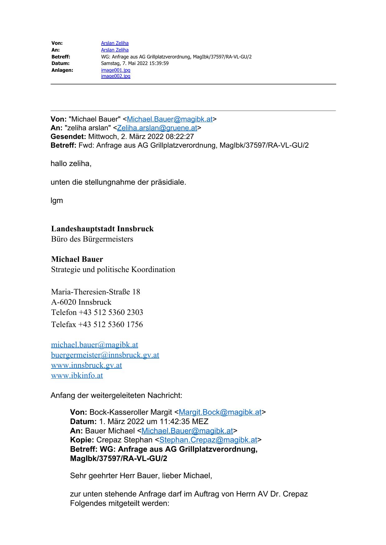 Betreff: Fwd: Anfrage aus AG Grillplatzverordnung, MagIbk/37597/RA-VL-GU/2