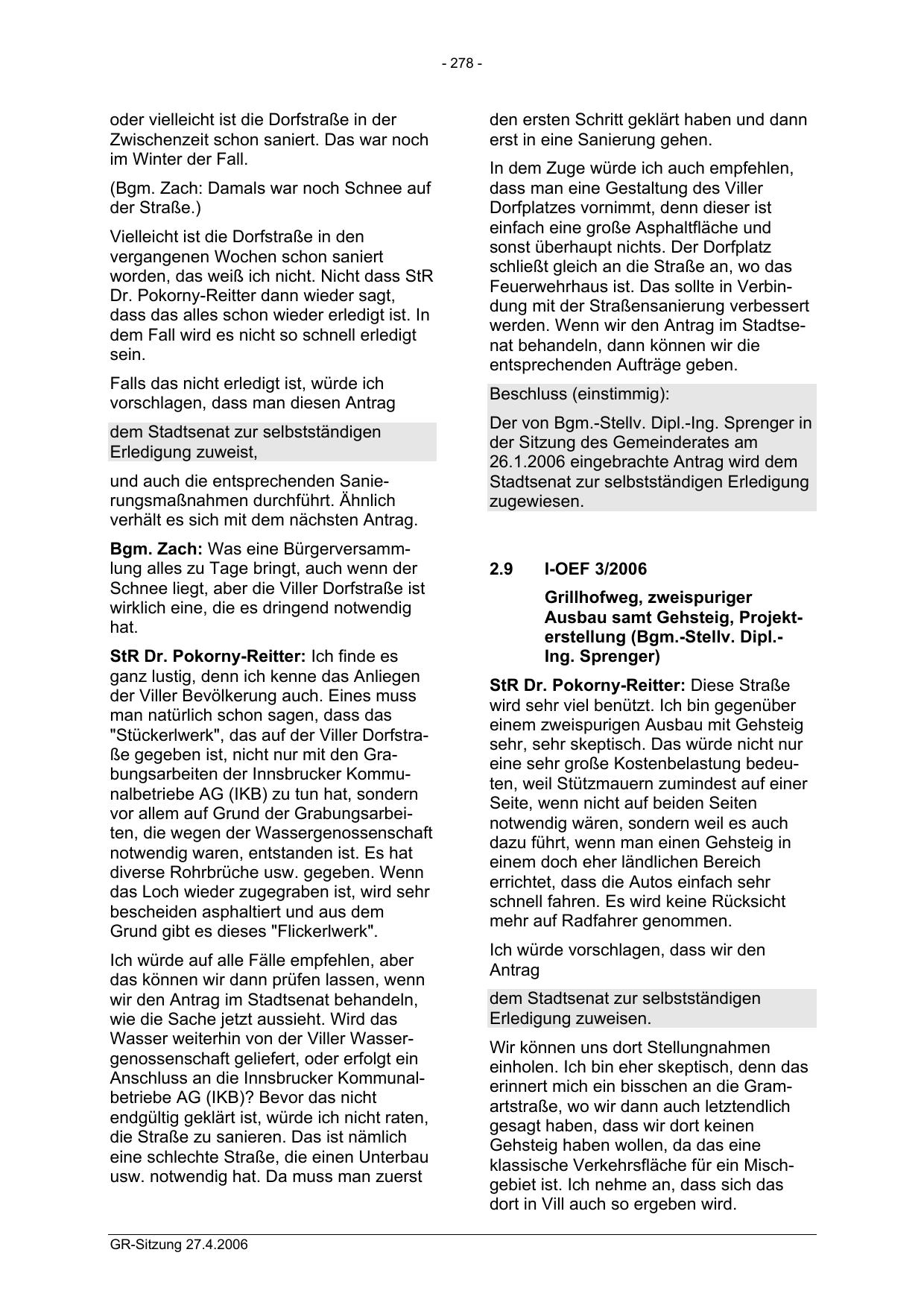 "Stückerlwerk", das auf der Viller Dorfstraße gegeben ist, nicht nur mit den Grabungsarbeiten der Innsbrucker Kommunalbetriebe AG (IKB) zu tun hat, sondern
