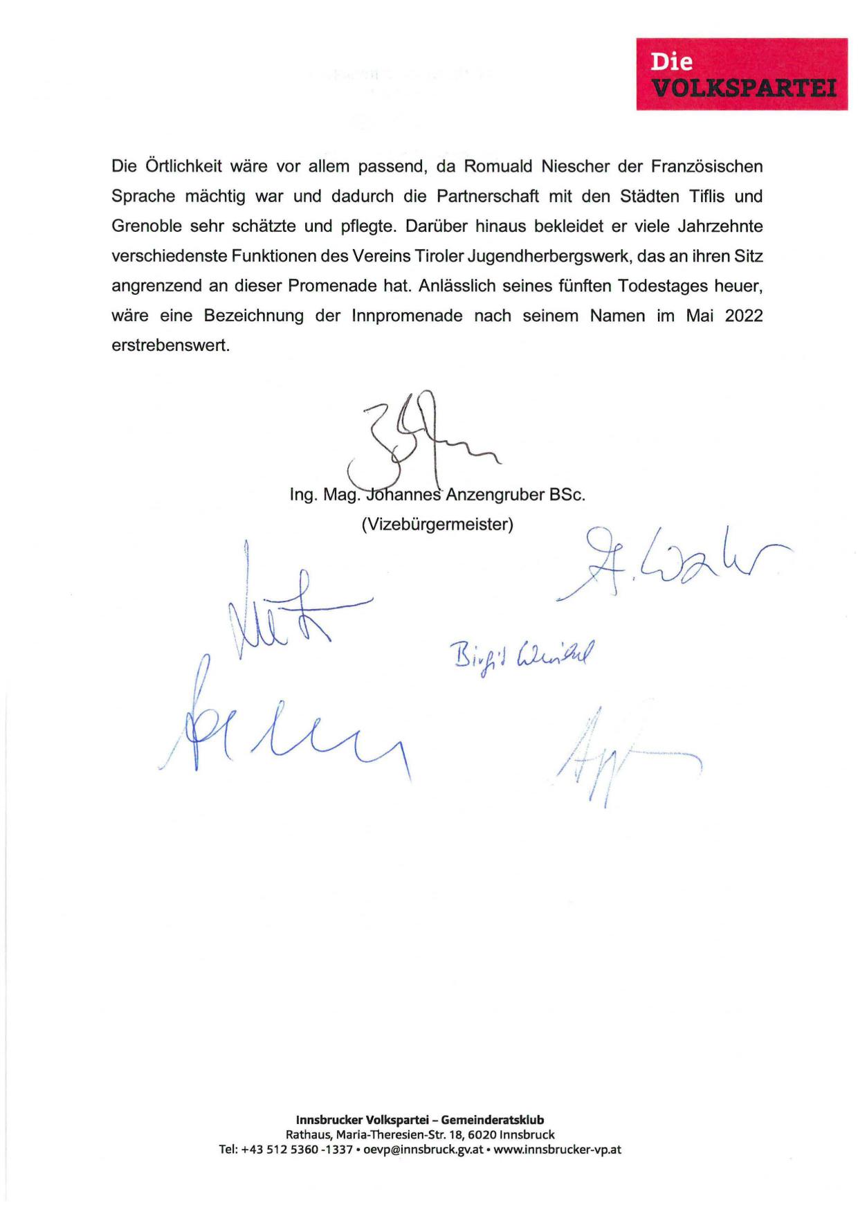 wäre eine Bezeichnung der lnnpromenade nach seinem Namen im Mai 2022