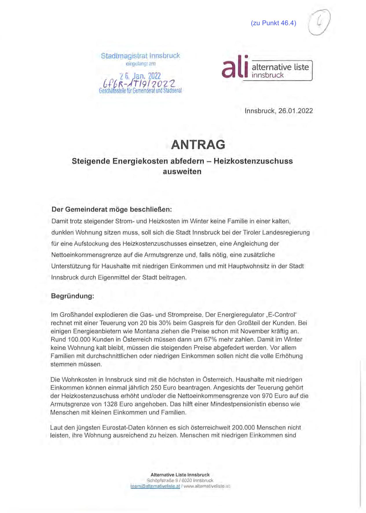 dunklen Wohnung sitzen muss, soll sich die Stadt Innsbruck bei der Tiroler Landesregierung