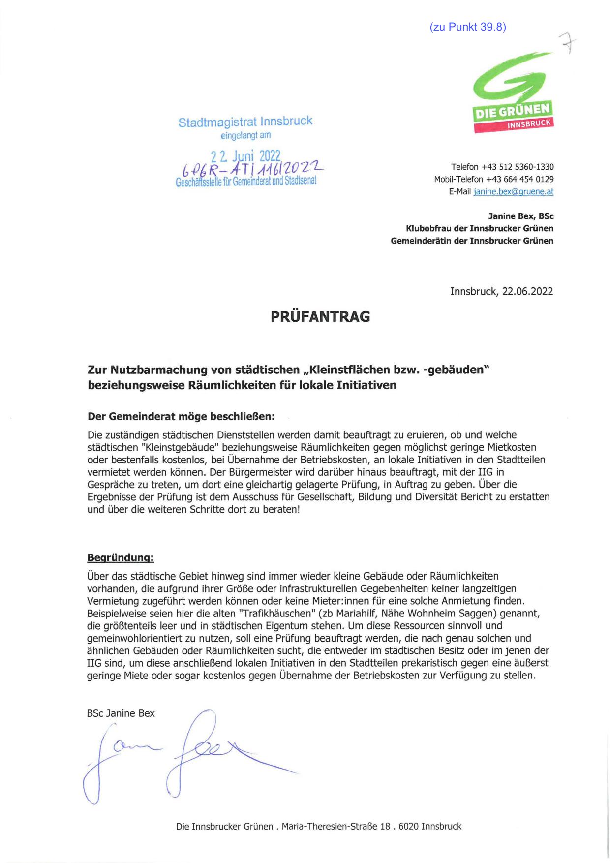 Die Innsbrucker Grünen . Maria-Theresien-Straße 18 . 6020 Innsbruck