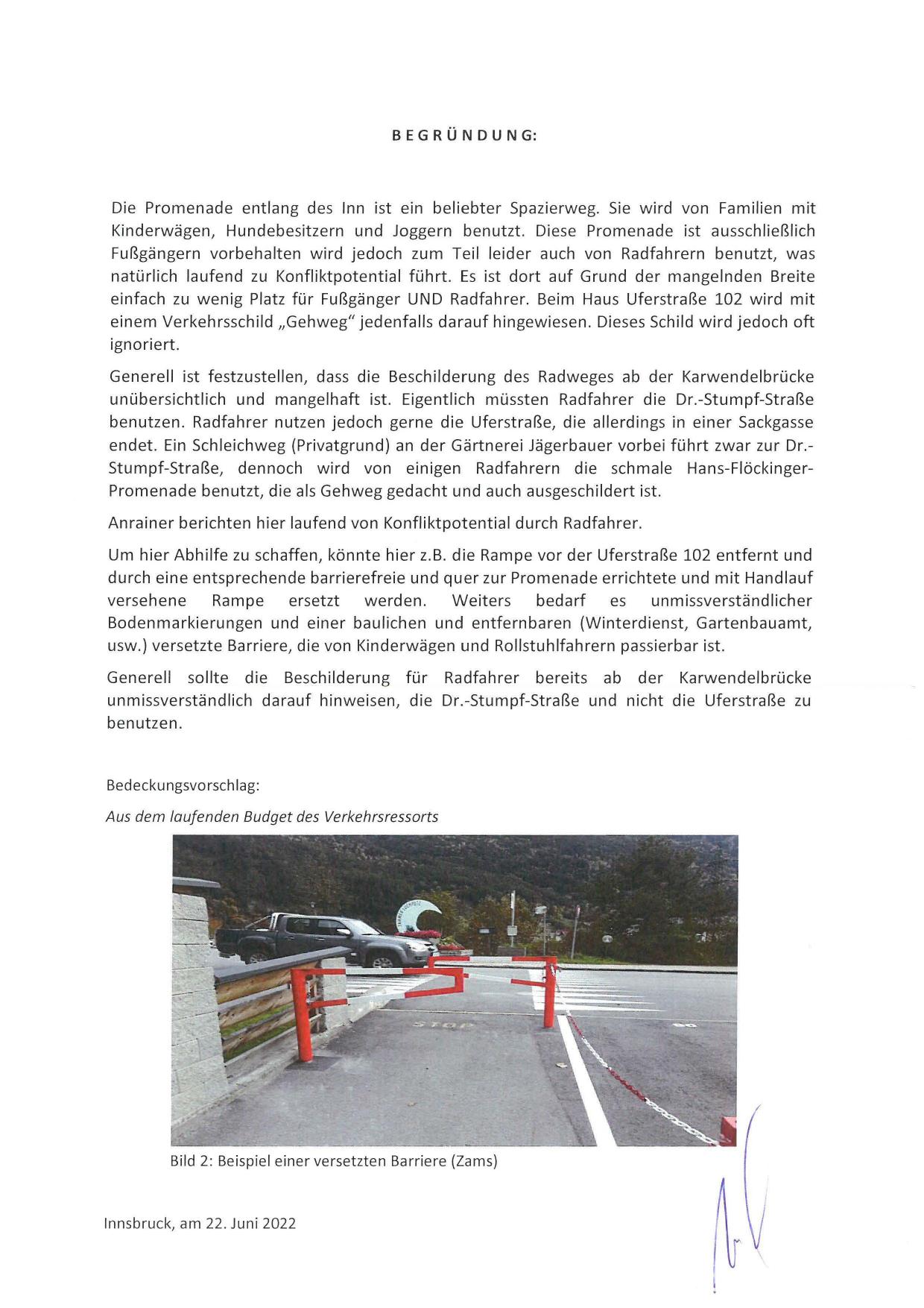 endet. Ein Schleichweg {Privatgrund) an der Gärtnerei Jägerbauer vorbei führt zwar zur Dr.Stumpf-Straße, dennoch wird von einigen Radfahrern die schmale Hans-FlöckingerPromenade benutzt, die als Gehweg gedacht und auch ausgeschildert ist.