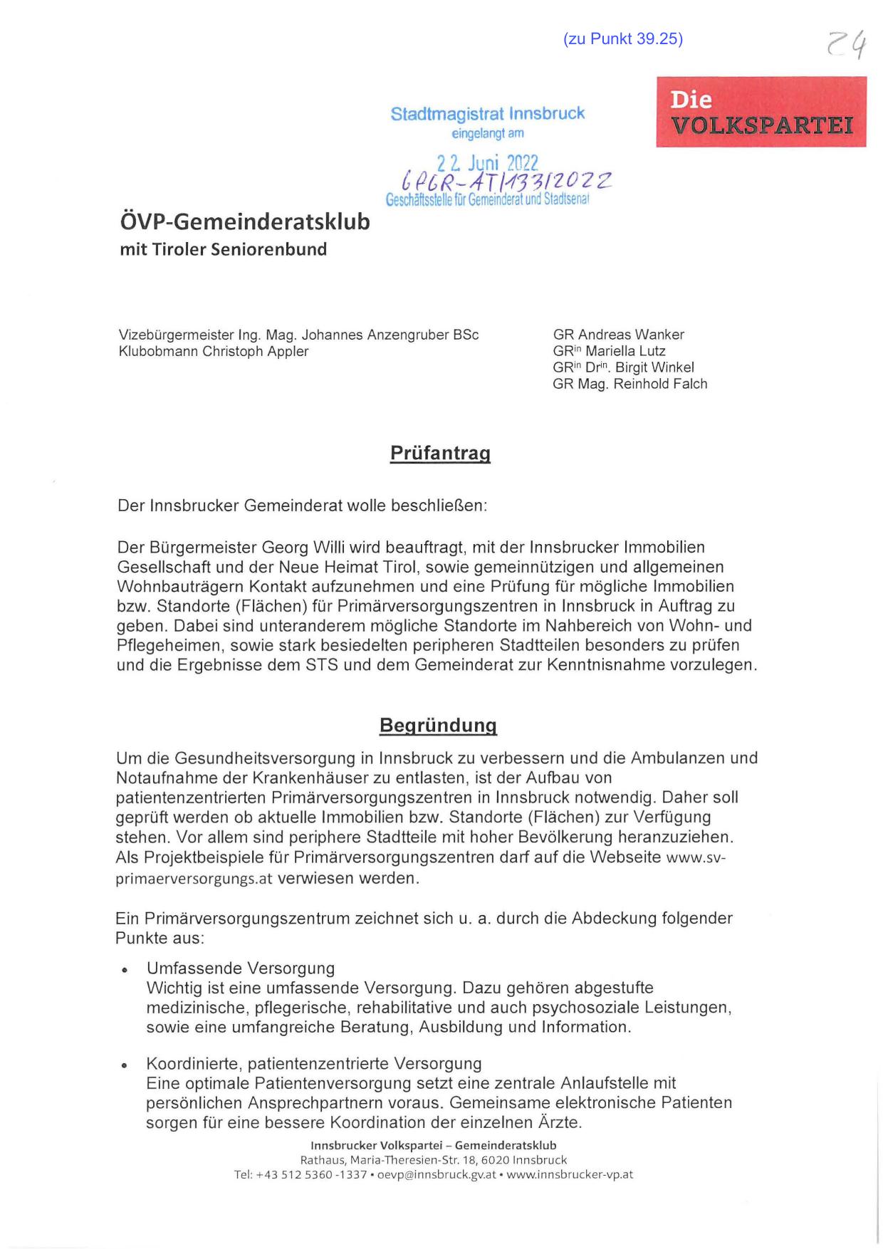 Der Bürgermeister Georg Willi wird beauftragt, mit der lnnsbrucker Immobilien