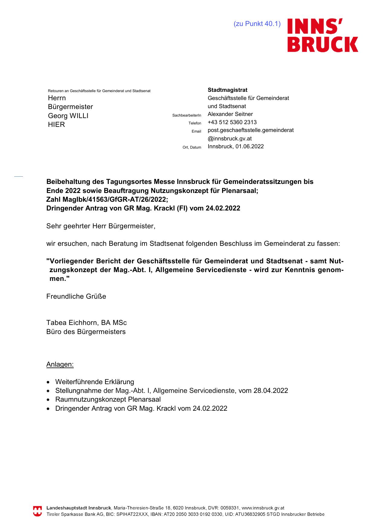 Beibehaltung des Tagungsortes Messe Innsbruck für Gemeinderatssitzungen bis
