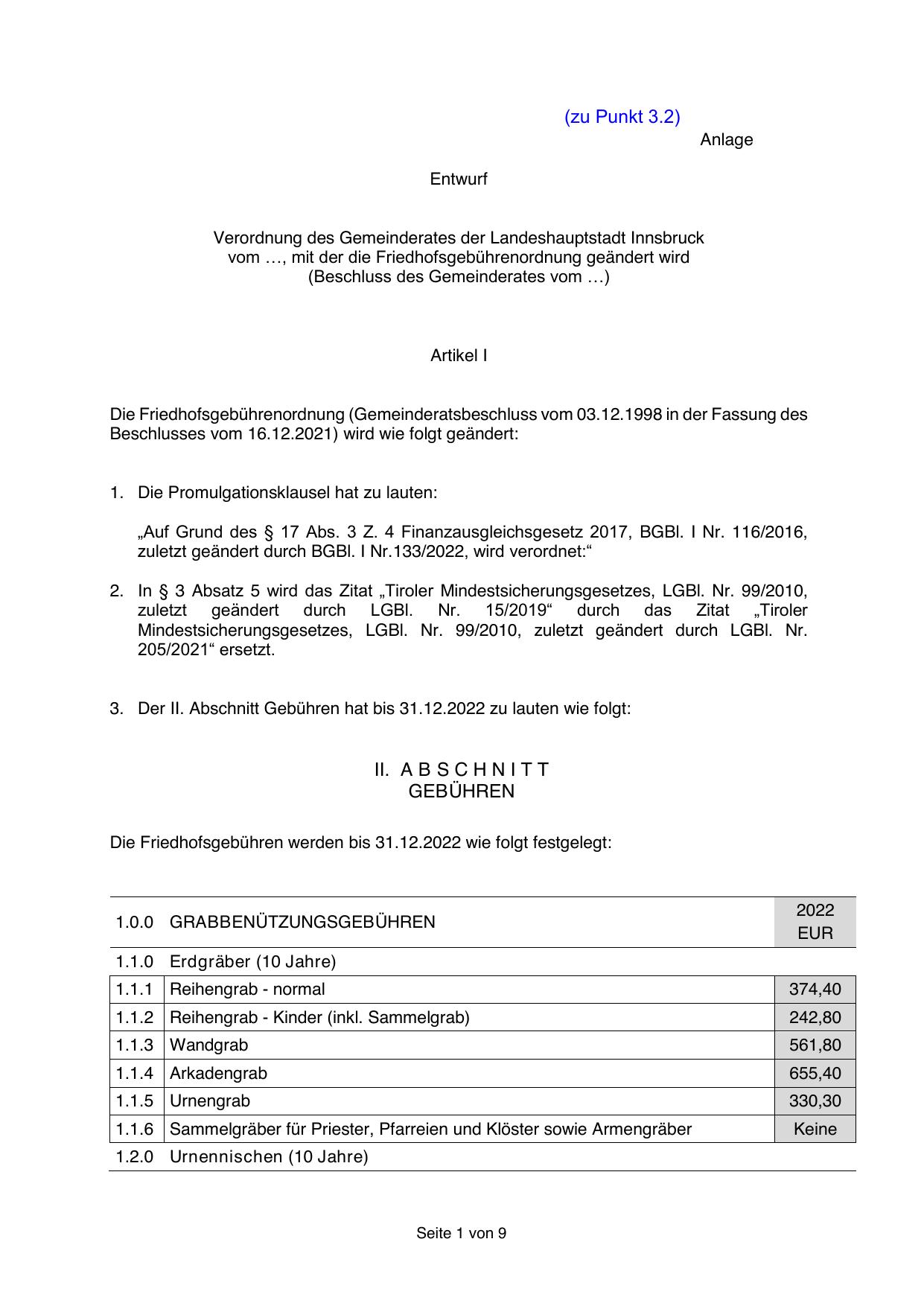 Verordnung des Gemeinderates der Landeshauptstadt Innsbruck