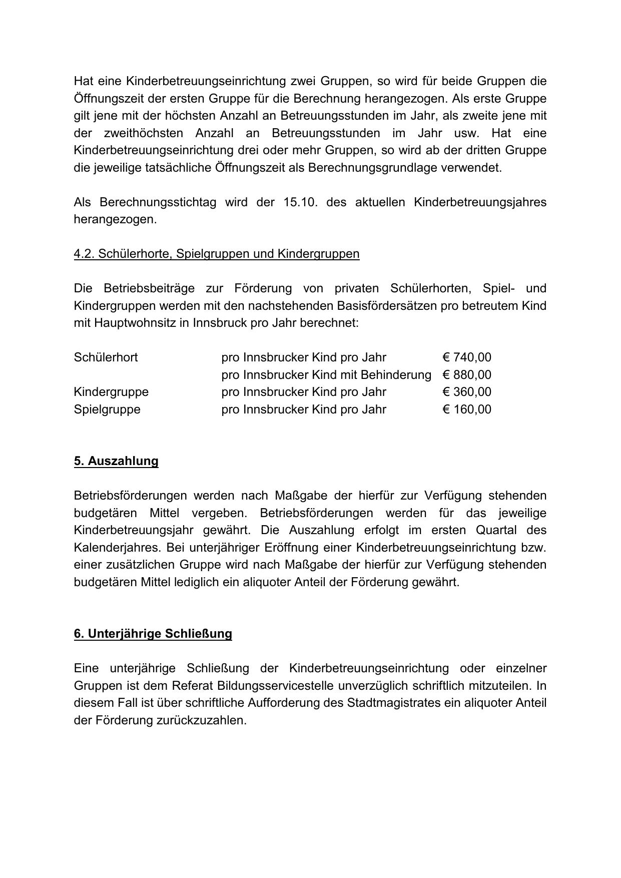 Die Betriebsbeiträge zur Förderung von privaten Schülerhorten, Spiel- und