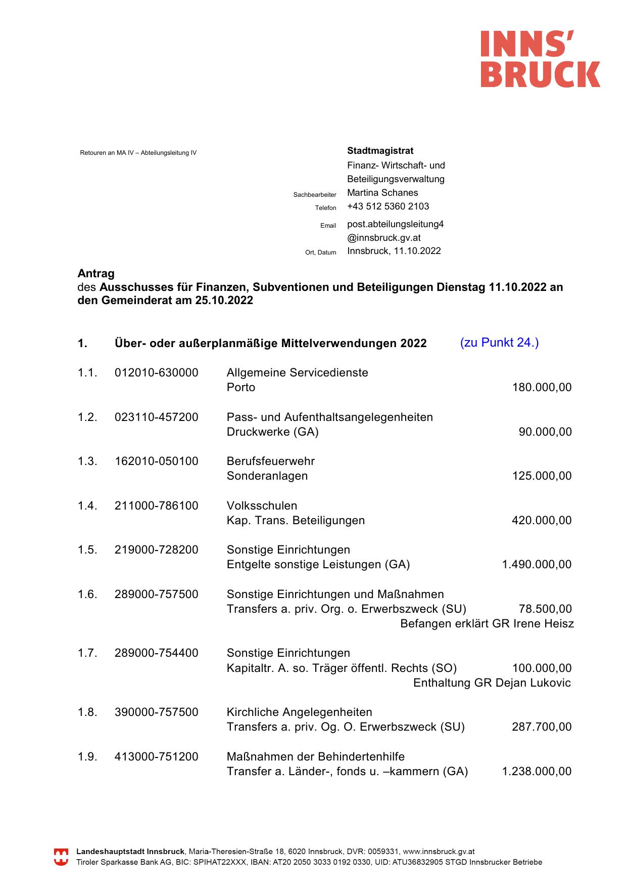 Über- oder außerplanmäßige Mittelverwendungen 2022