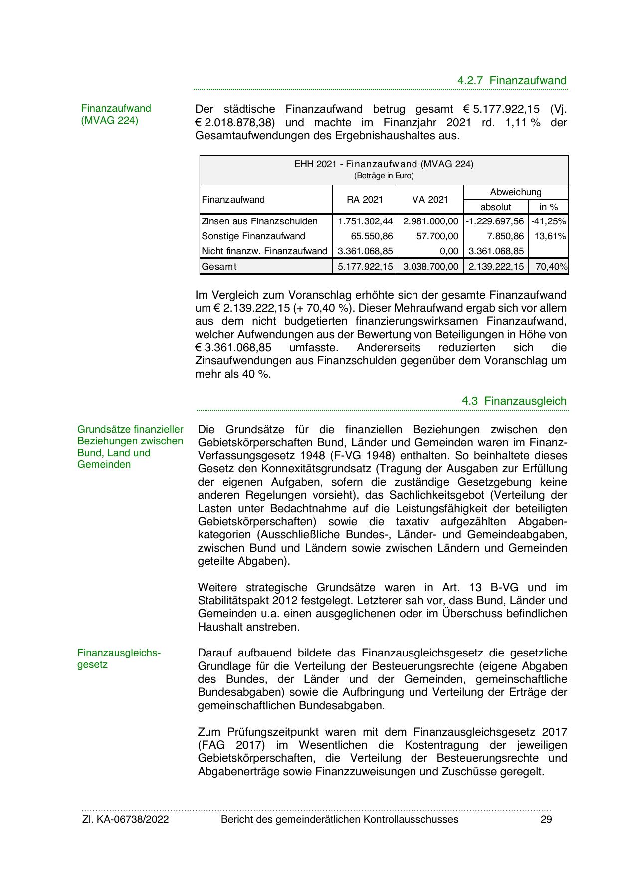 Der städtische Finanzaufwand betrug gesamt € 5.177.922,15 (Vj.