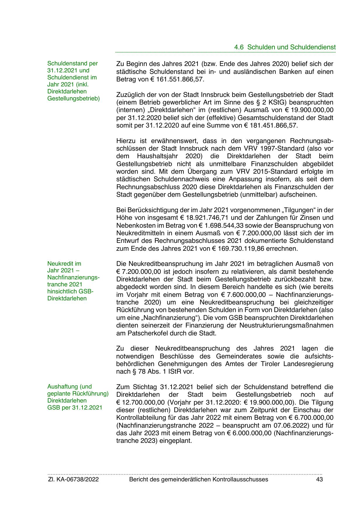 Hierzu ist erwähnenswert, dass in den vergangenen Rechnungsabschlüssen der Stadt Innsbruck nach dem VRV 1997-Standard (also vor