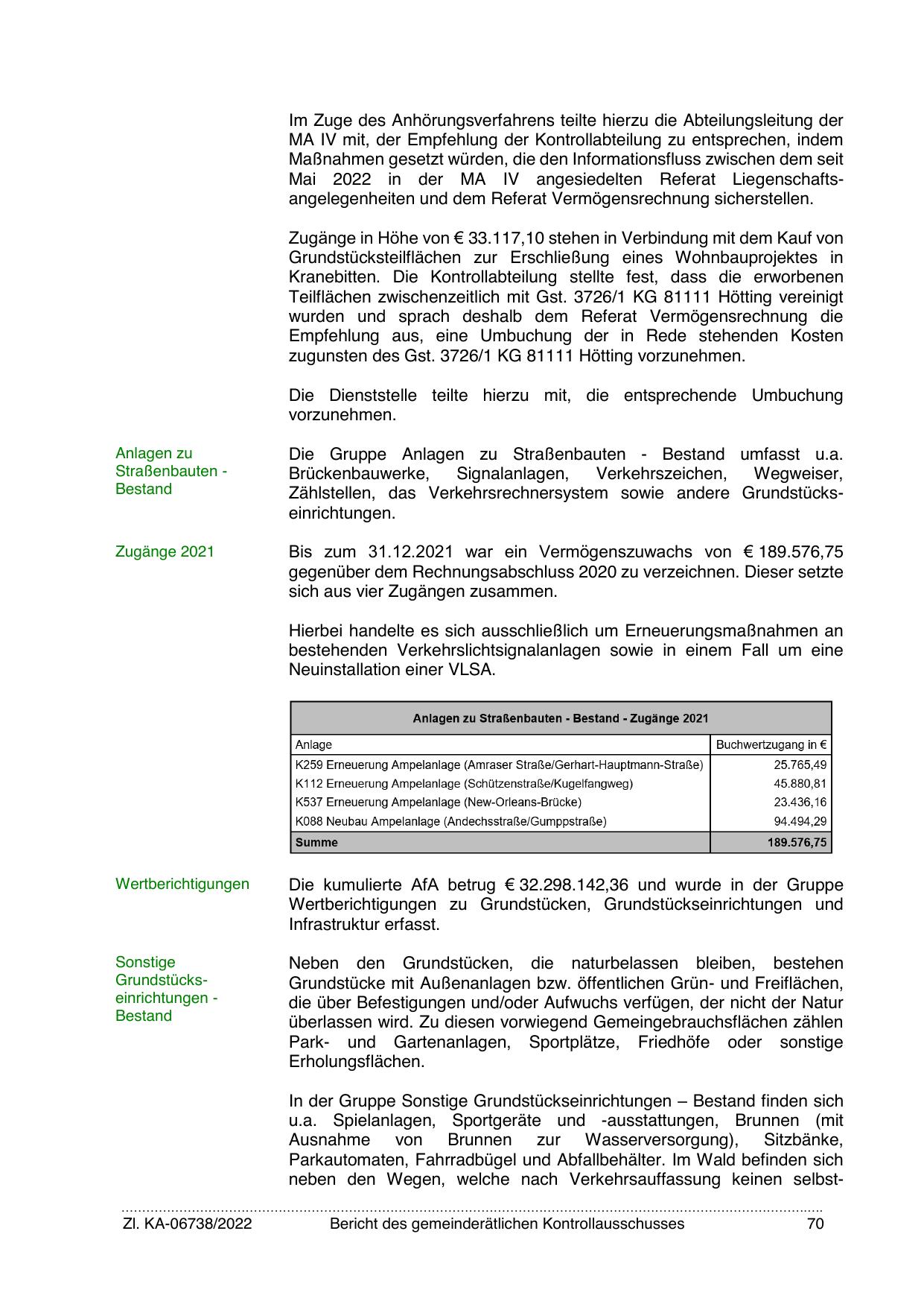 Die Gruppe Anlagen zu Straßenbauten - Bestand umfasst u.a.