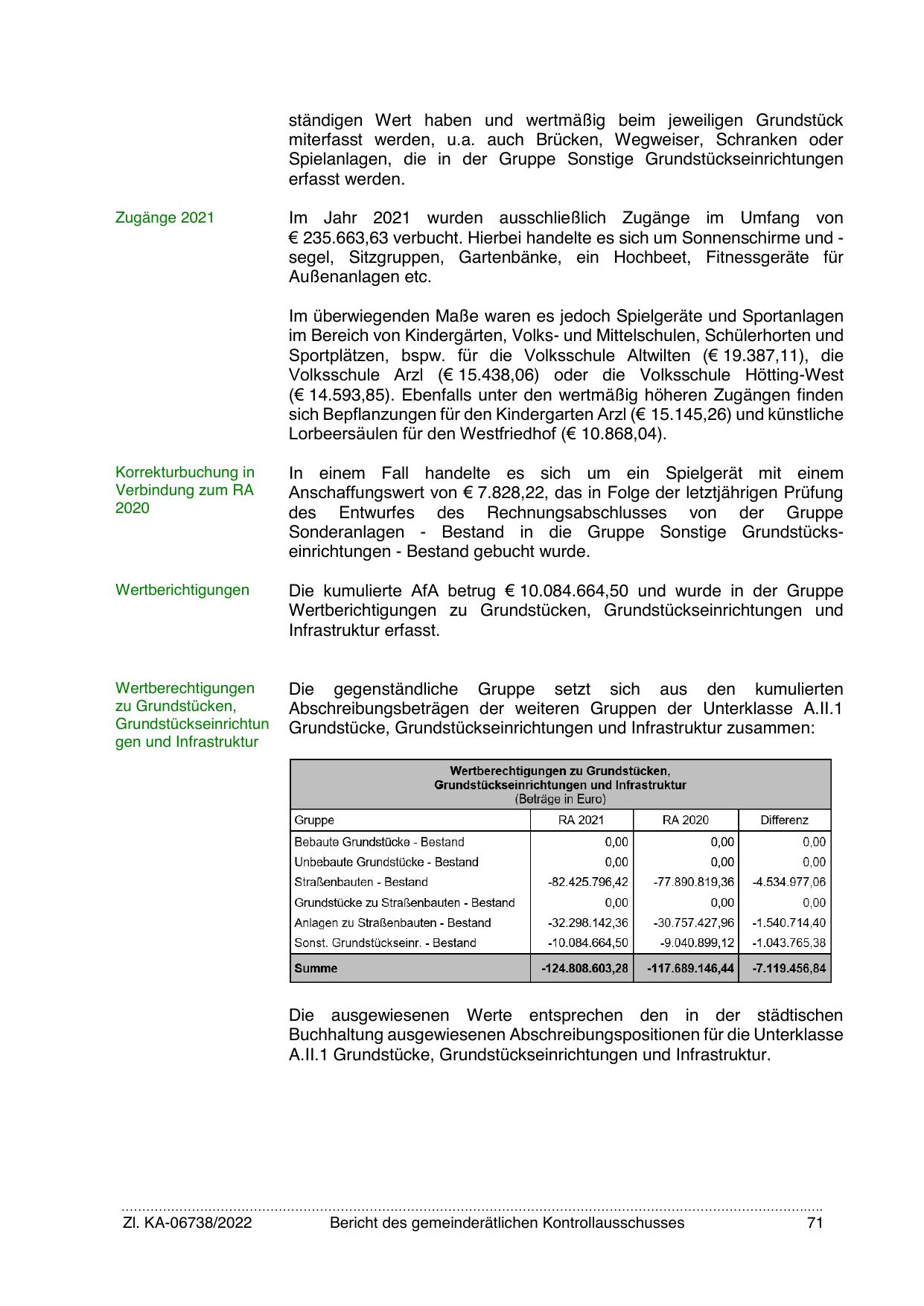 A.II.1 Grundstücke, Grundstückseinrichtungen und Infrastruktur.