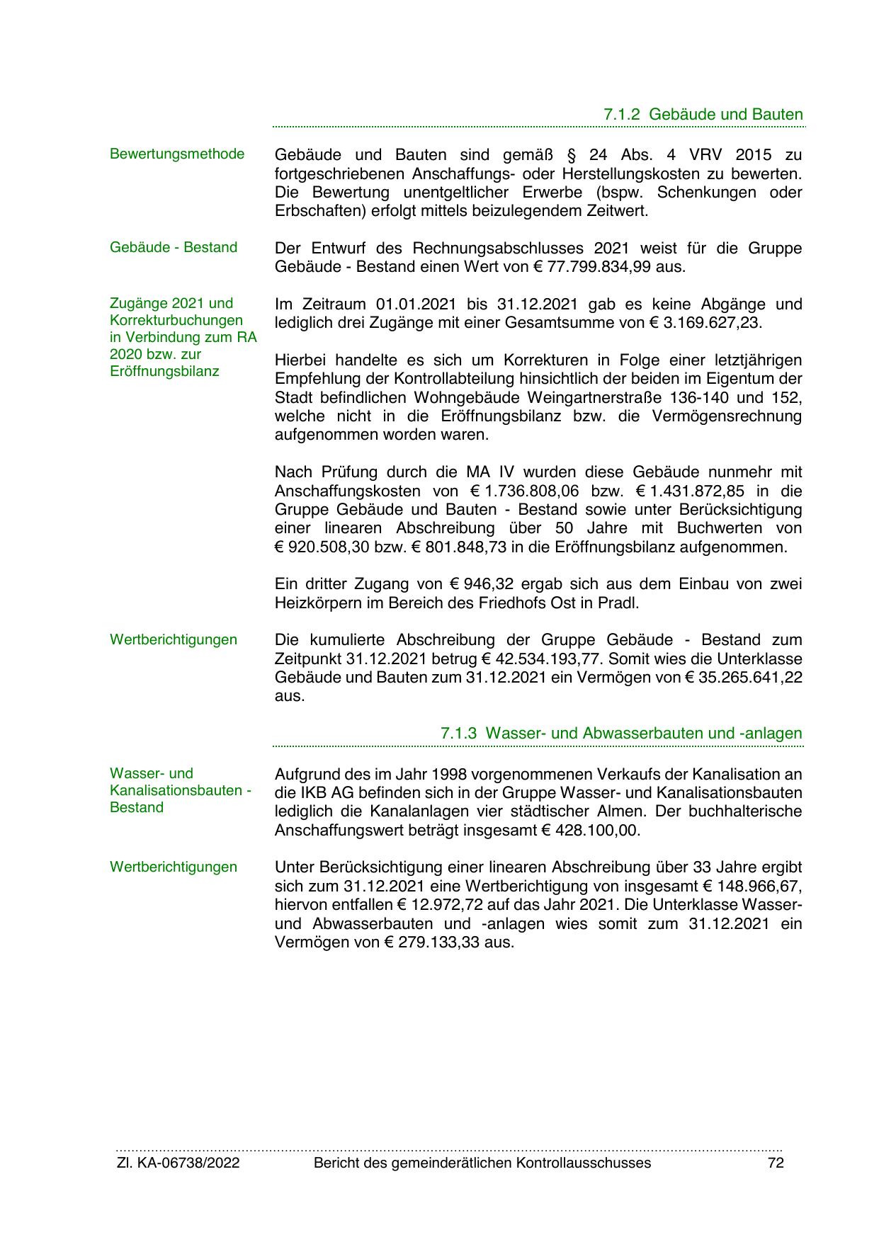 hiervon entfallen € 12.972,72 auf das Jahr 2021. Die Unterklasse Wasserund Abwasserbauten und -anlagen wies somit zum 31.12.2021 ein