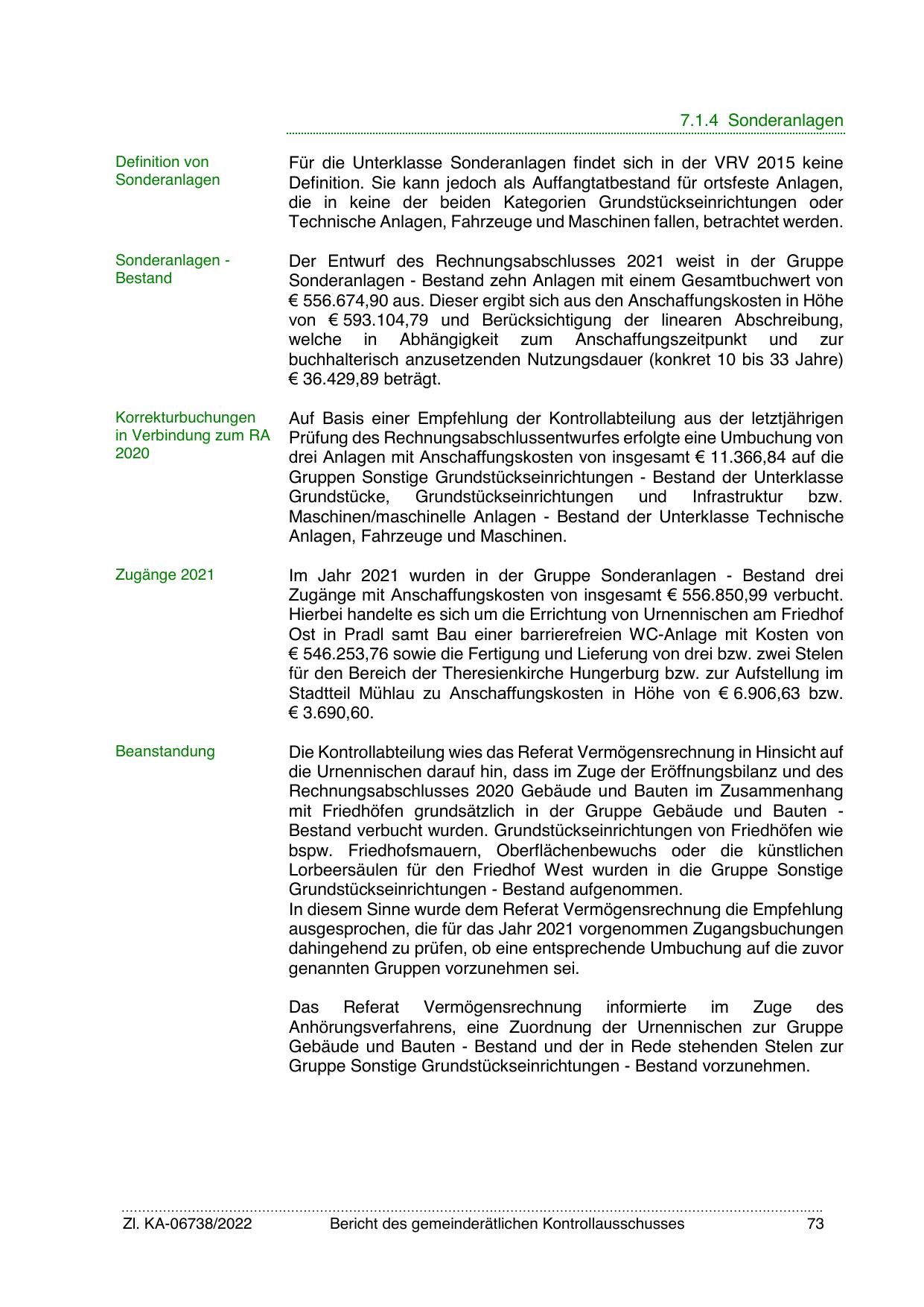 mit Friedhöfen grundsätzlich in der Gruppe Gebäude und Bauten Bestand verbucht wurden. Grundstückseinrichtungen von Friedhöfen wie