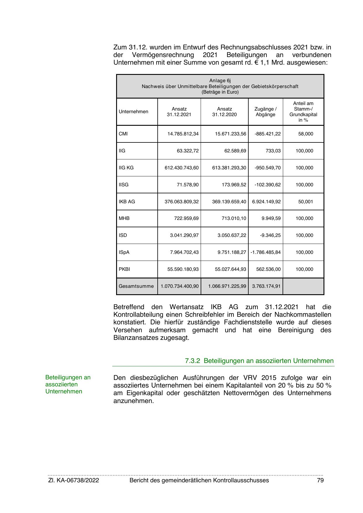 Betreffend den Wertansatz IKB AG zum 31.12.2021 hat die