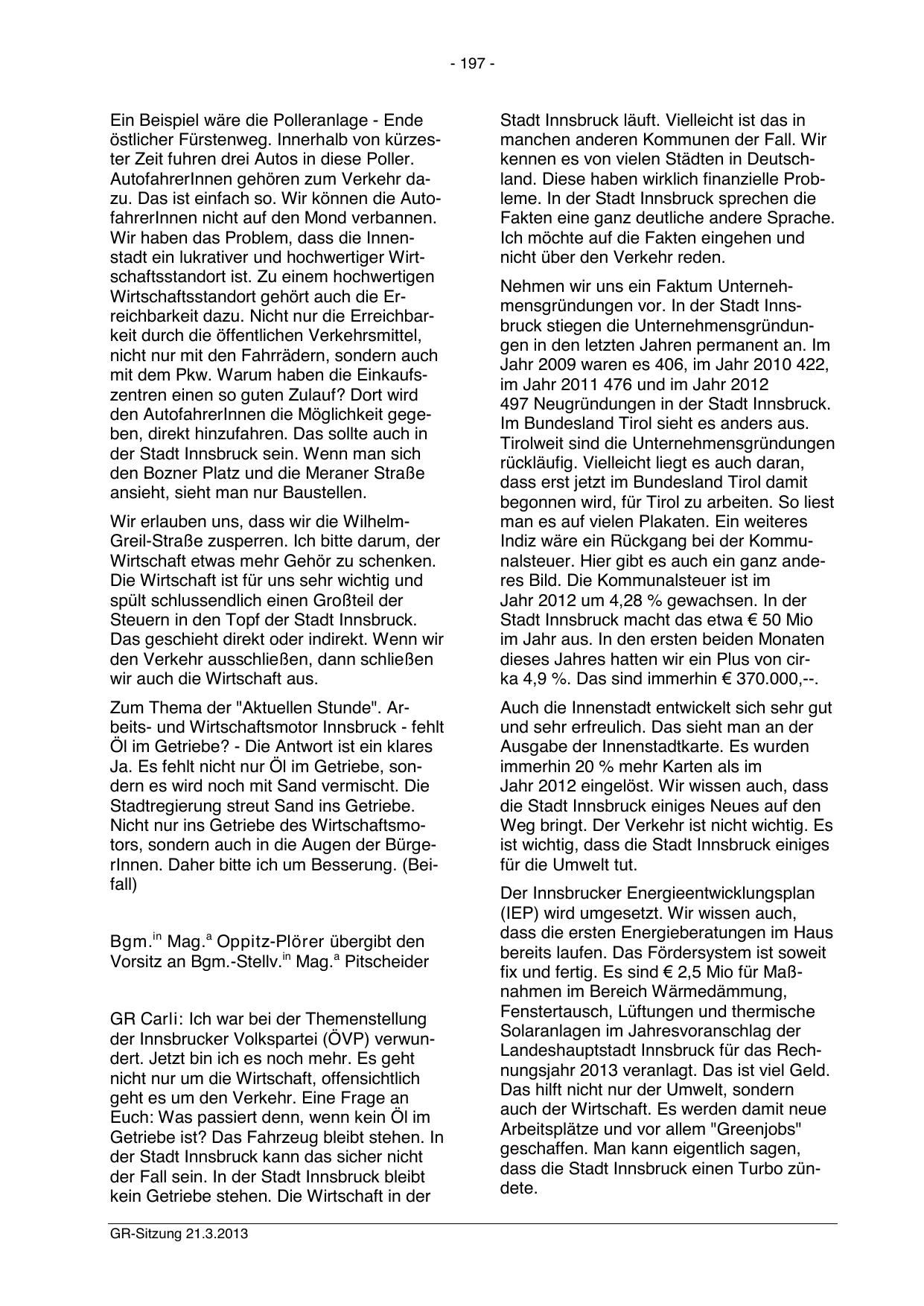 Landeshauptstadt Innsbruck für das Rechnungsjahr 2013 veranlagt. Das ist viel Geld.