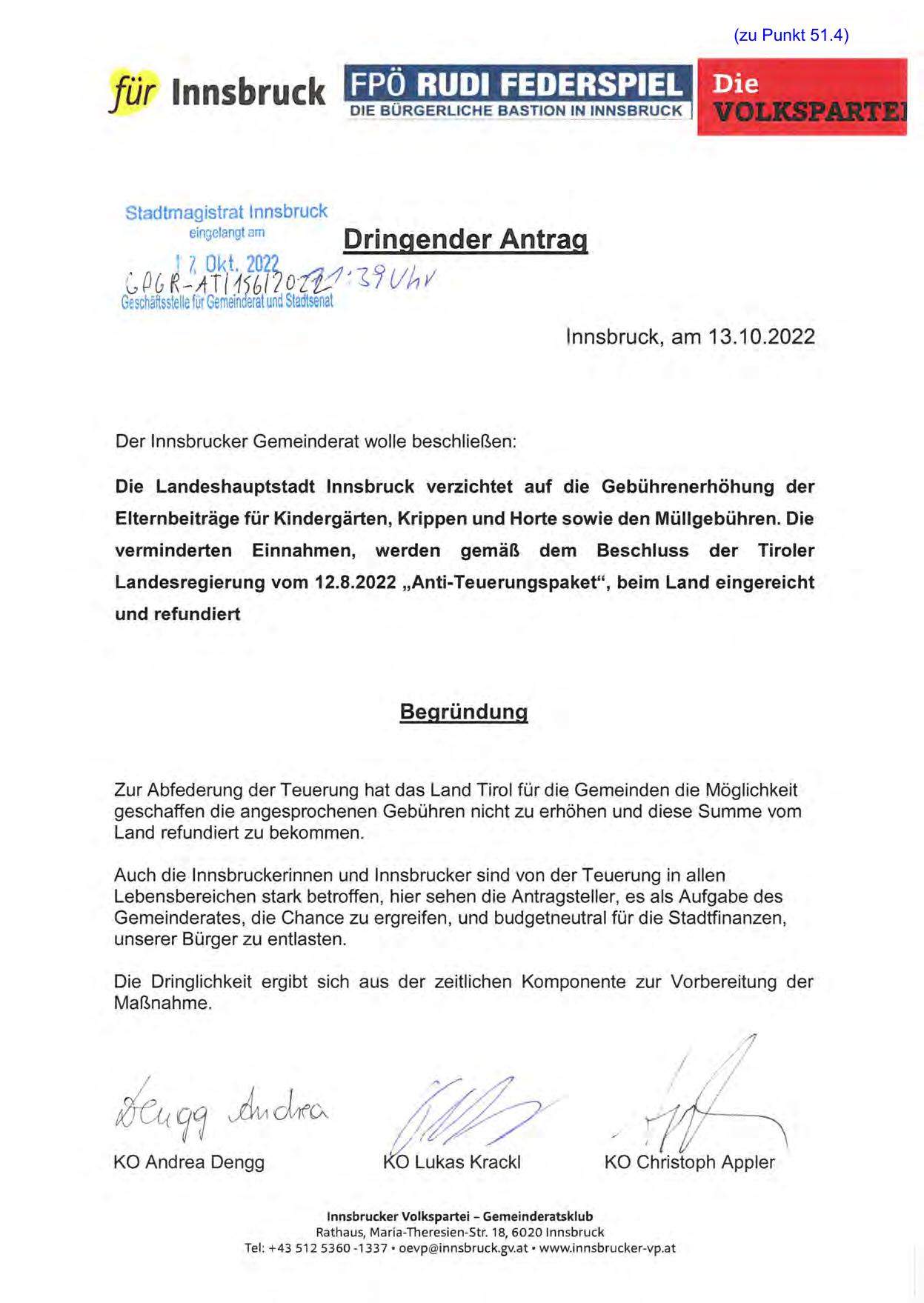 Tel : +43 512 5360 -1337 • oevp@i nnsbruck.gv.at • www.innsbrucker-vp.at