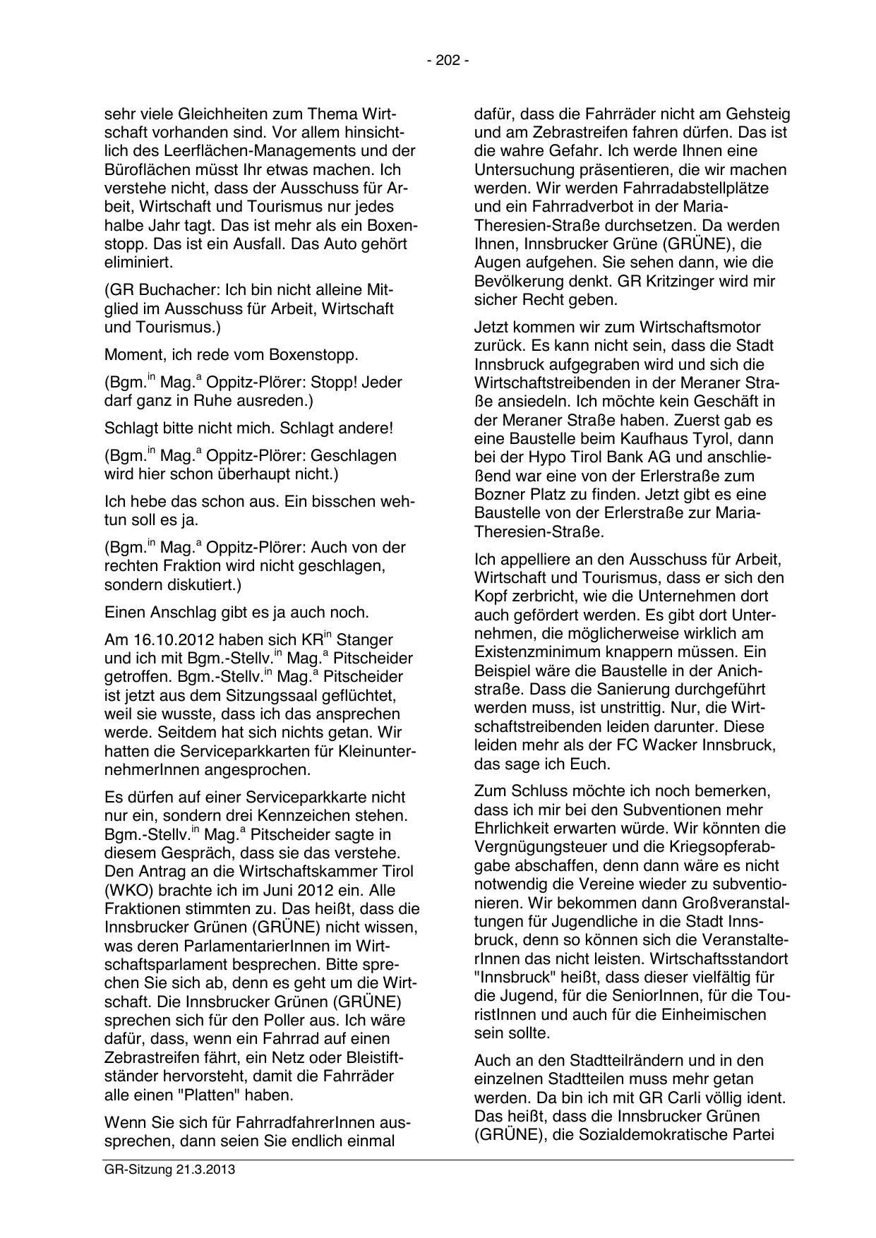 was deren ParlamentarierInnen im Wirtschaftsparlament besprechen. Bitte sprechen Sie sich ab, denn es geht um die Wirtschaft. Die Innsbrucker Grünen (GRÜNE)
